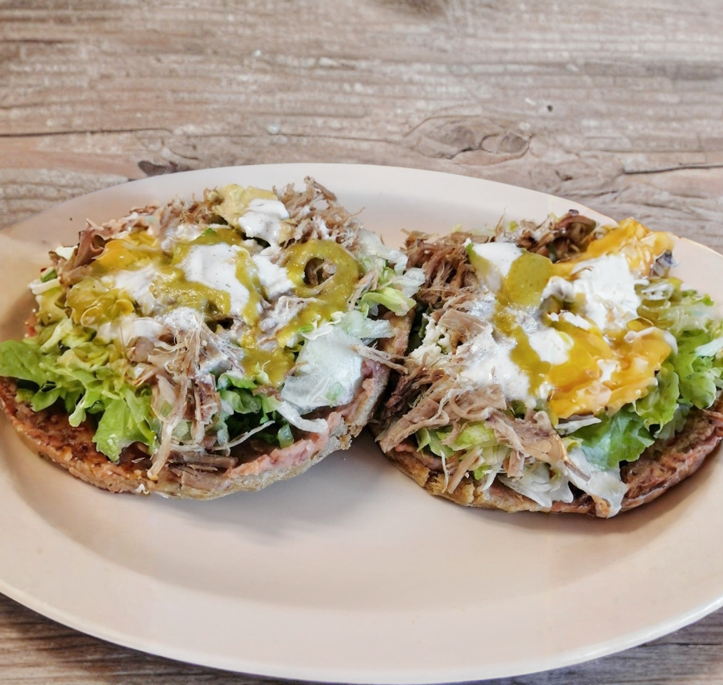 3 Sopes Con Guiso A Elejir, Frijilitos,Lechuga,Tomate,Queso Fresco Y Aguacate.