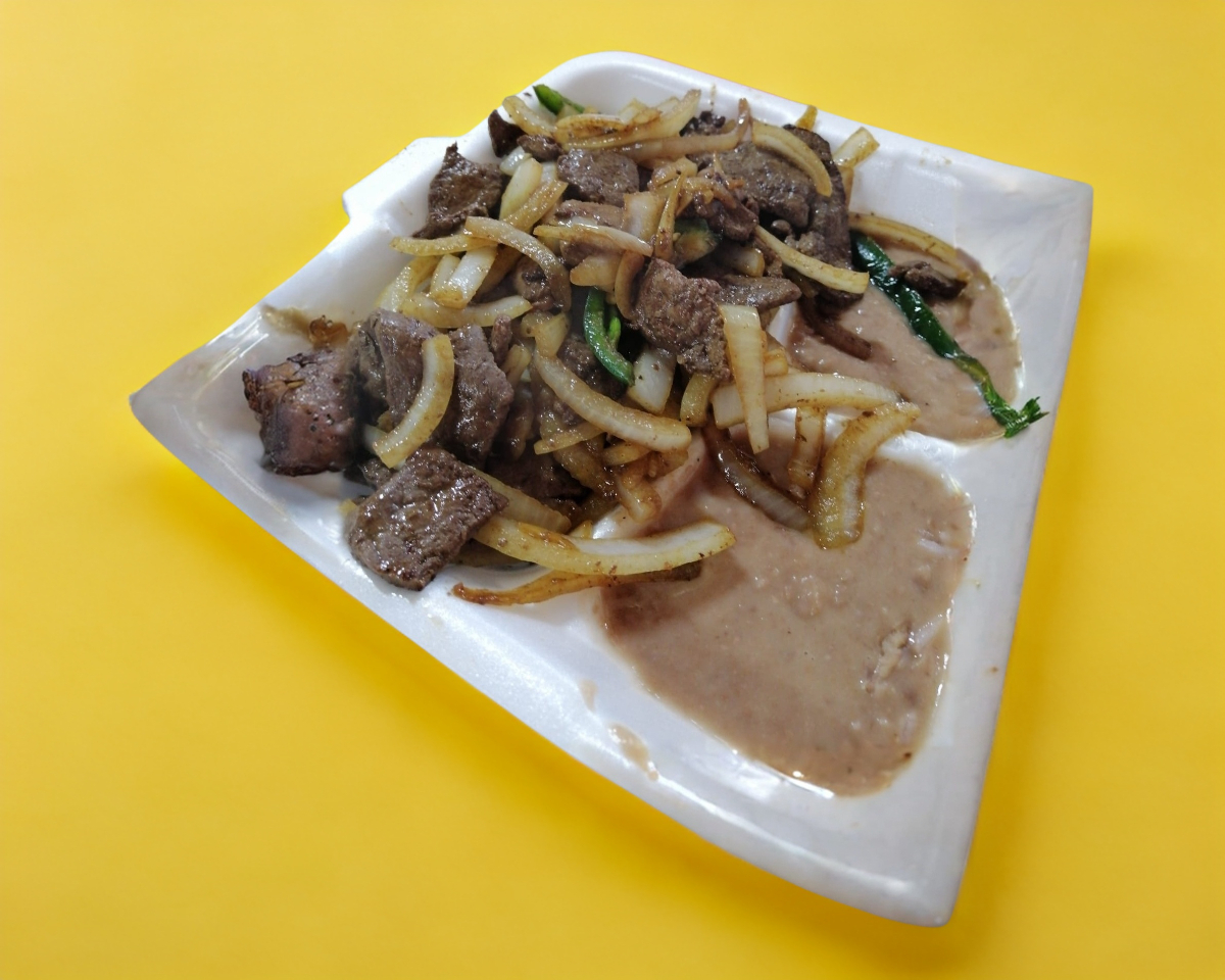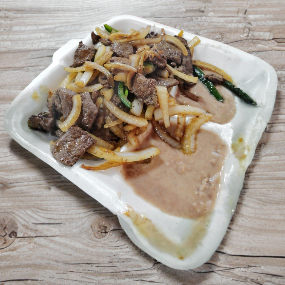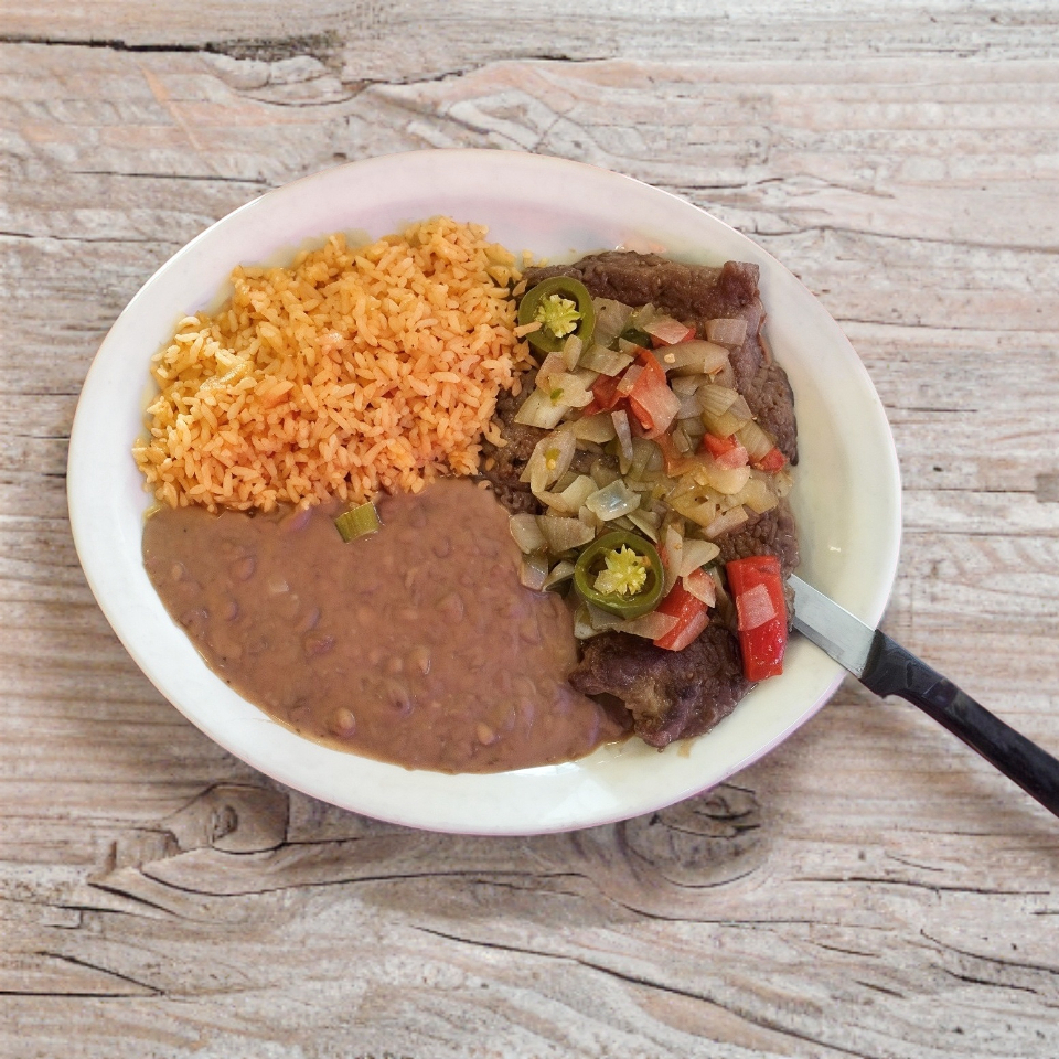 1 Orden De Bisteck Ranchero Acompañado Arroz Y Frijoles.