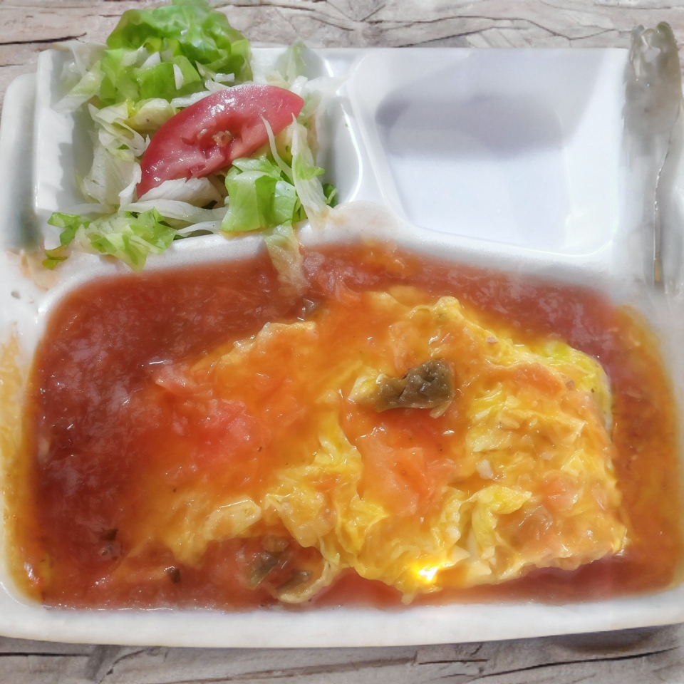 Torta De Huevo Con Frijoles Adentro, Bañada De Salsa De Guayin.