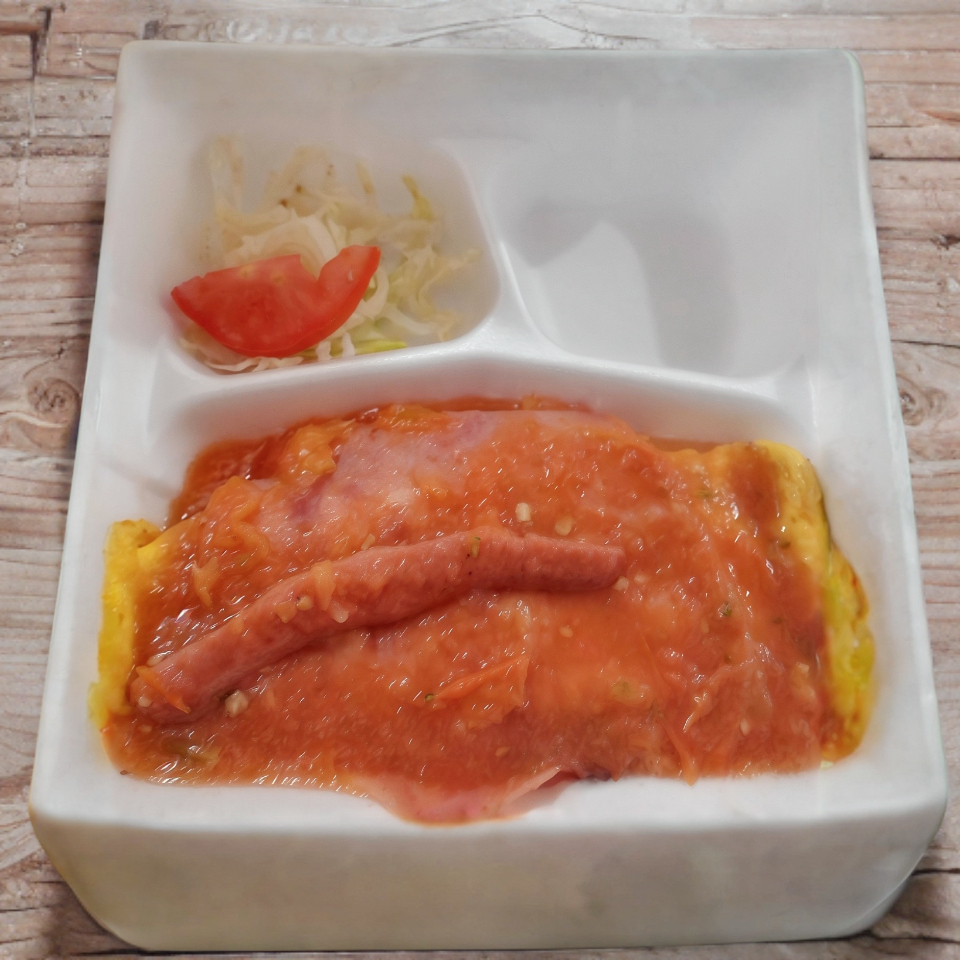 Torta De Huevo Con Frijoles Adentro,Jamon Y Wines Arriba, Bañada De Salsa De Guayin.