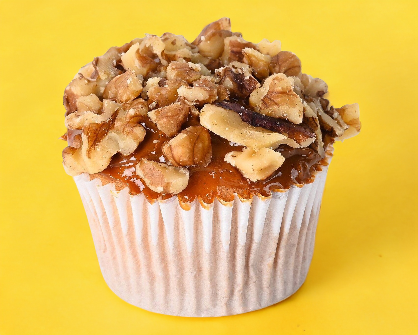 Dulce de leche y nuez en trocitos y pan sabor mantequilla con relleno de dulce de leche