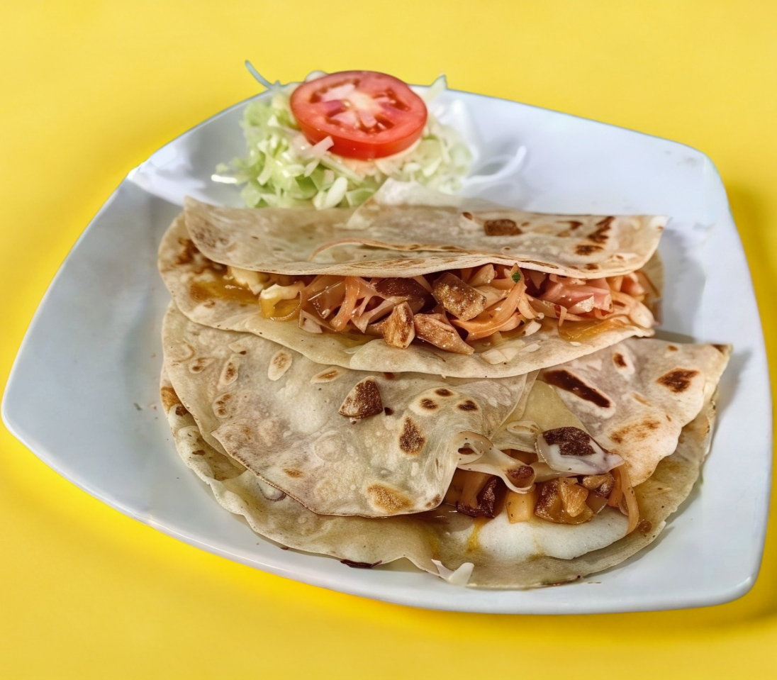 Tortilla de harina con frijoles queso y jalapeño frito