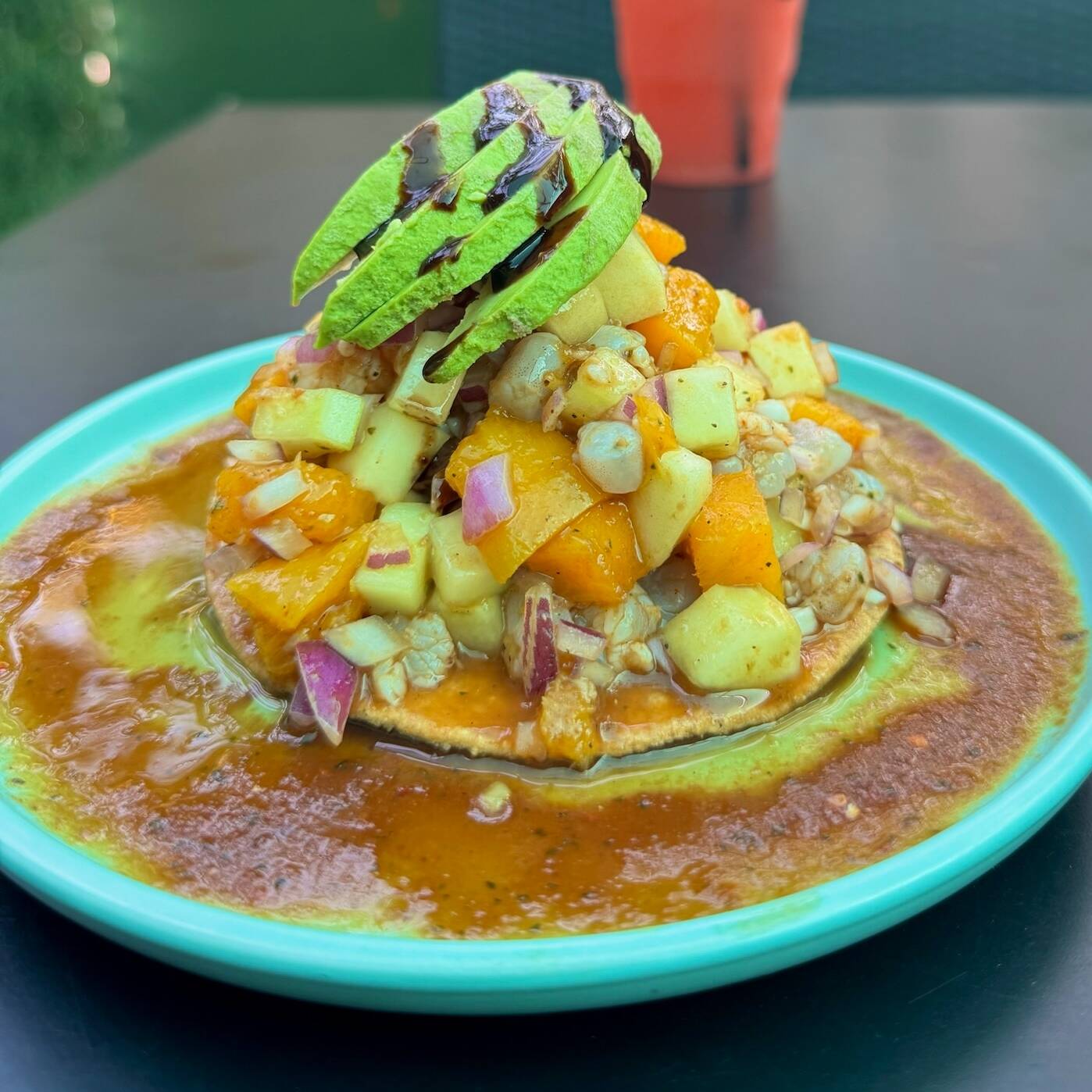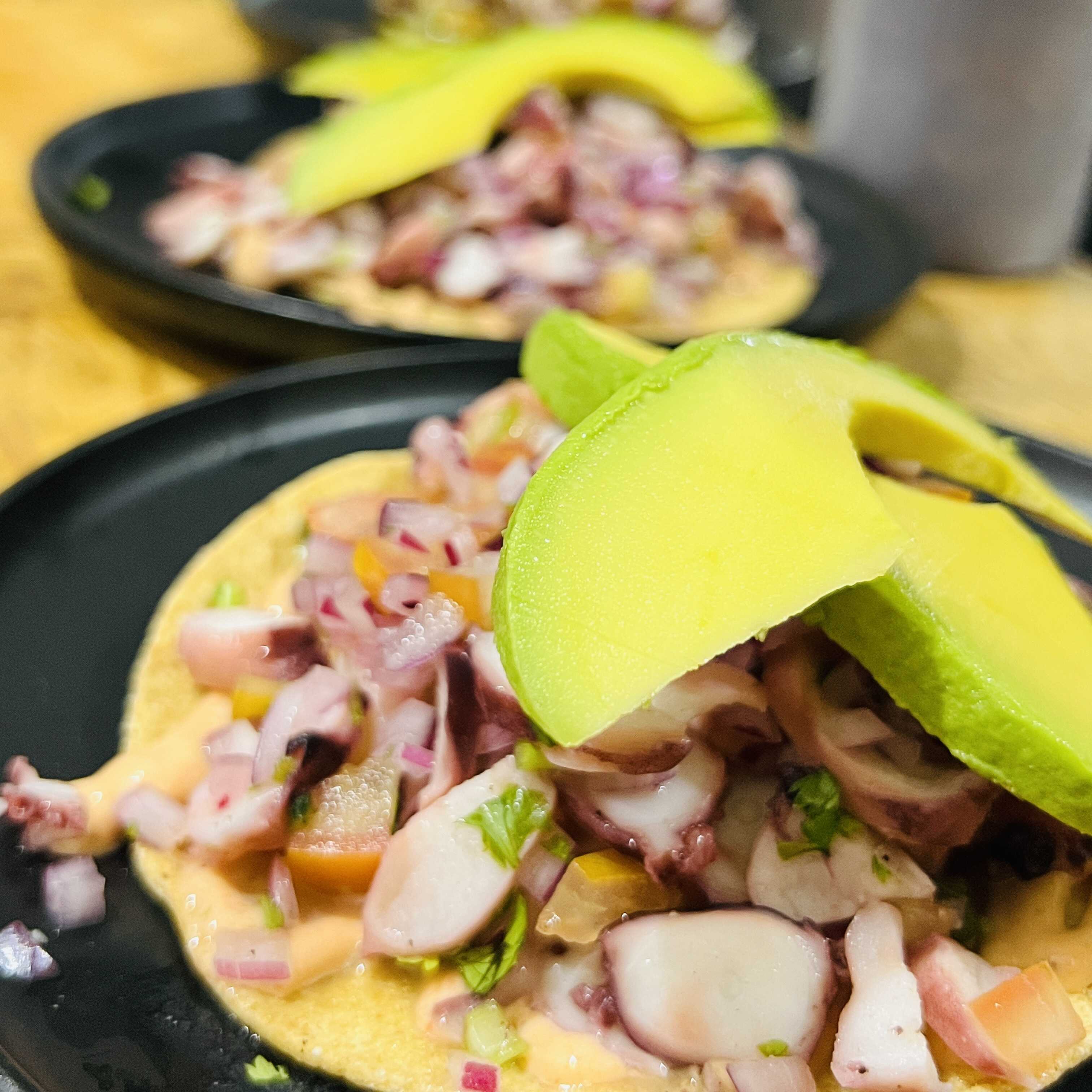 Tostada de ceviche de pulpo fresco.