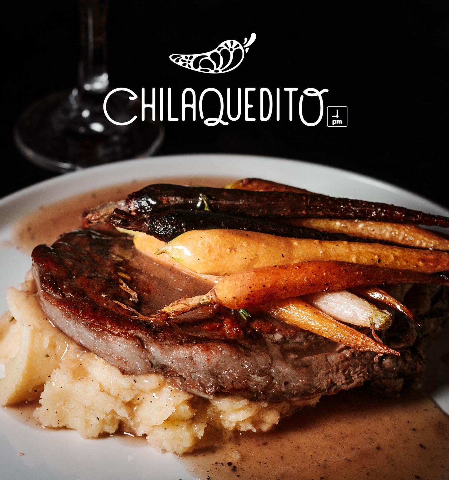 Sobre una cama de pure de papa,acompañado de baby carrots y gracy
