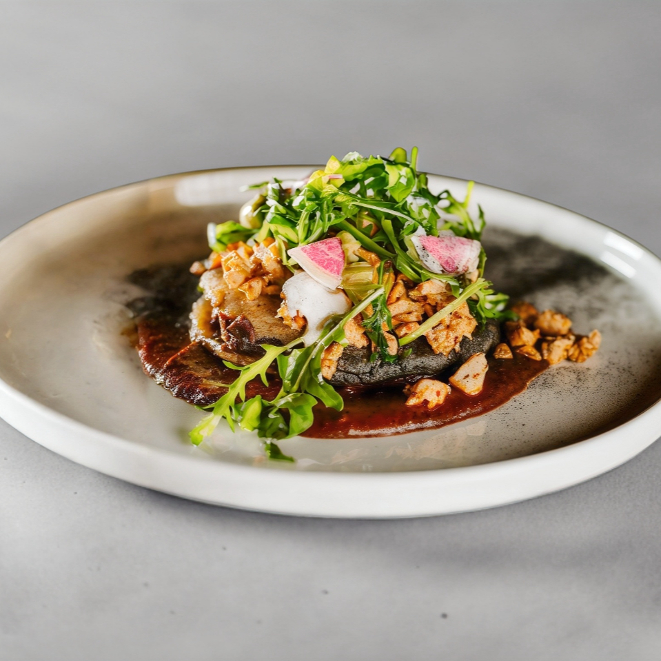 Memela con Cerdo Confitado y Frijoles Negros