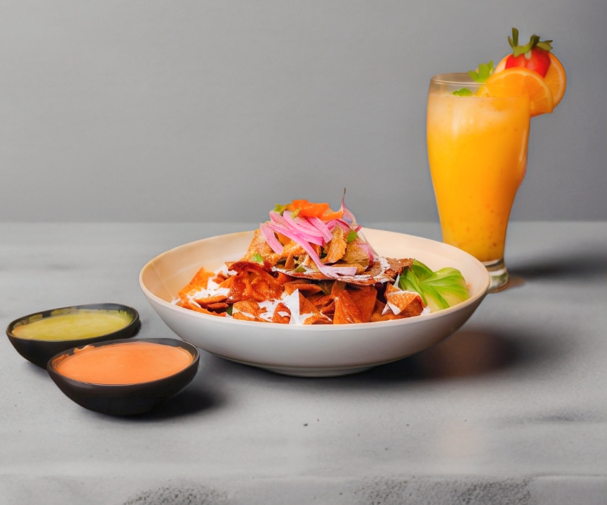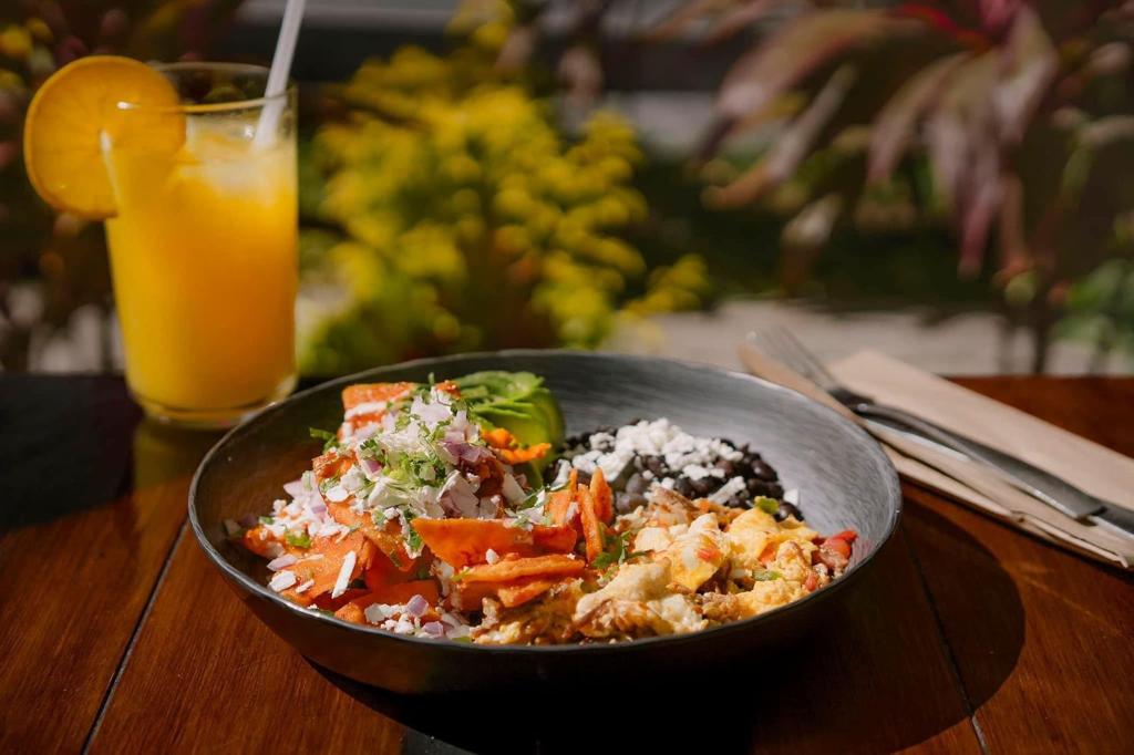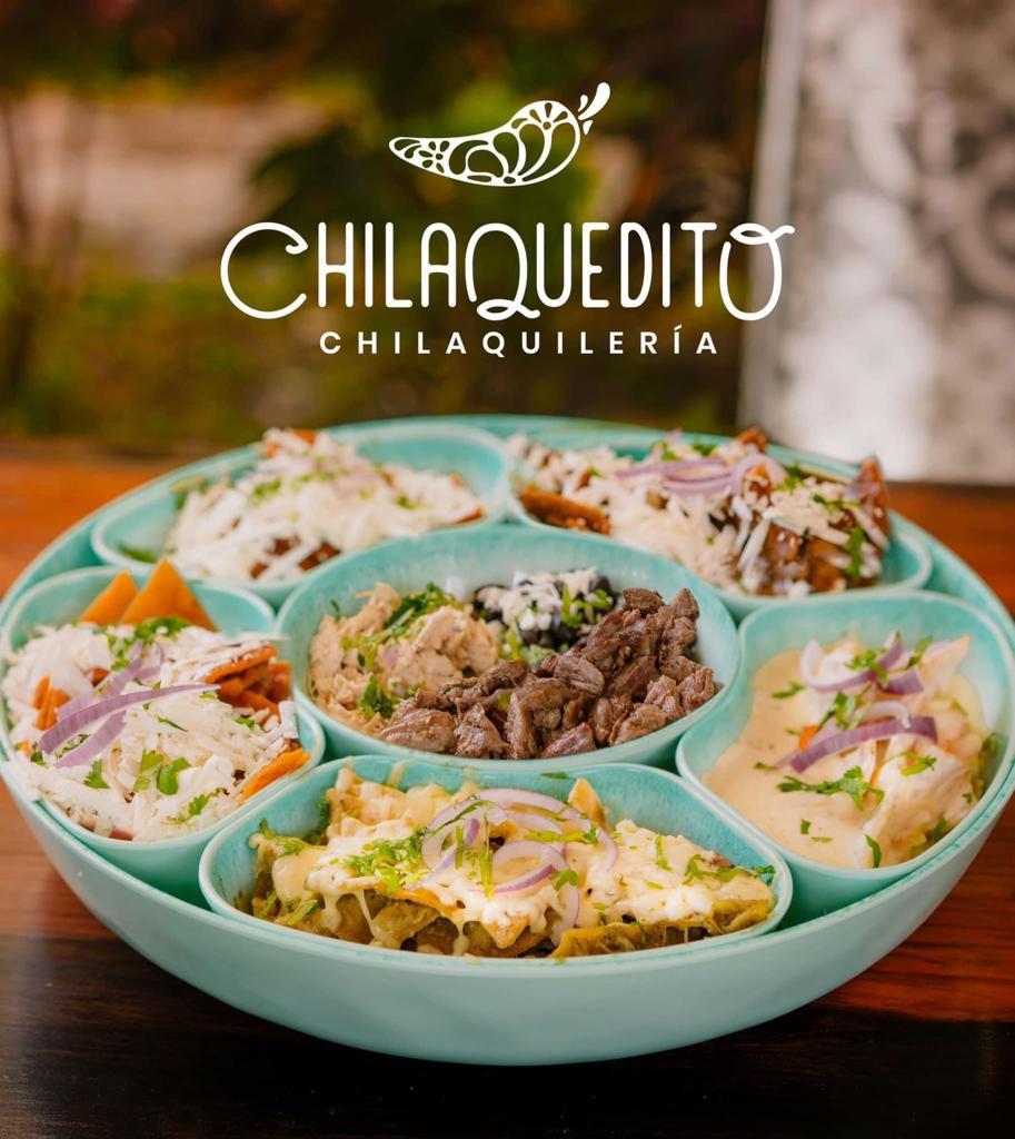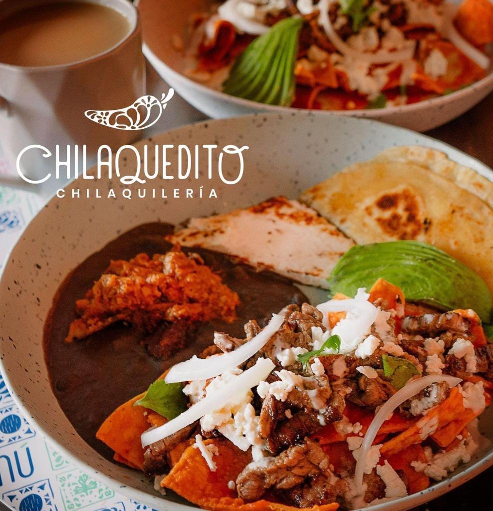 Chilaquiles bañados con la salsa chilaquedito, acompañados de fajita, frijoles, queso panela a la plancha, una quesadilla y aguacate, incluyen queso y crema.