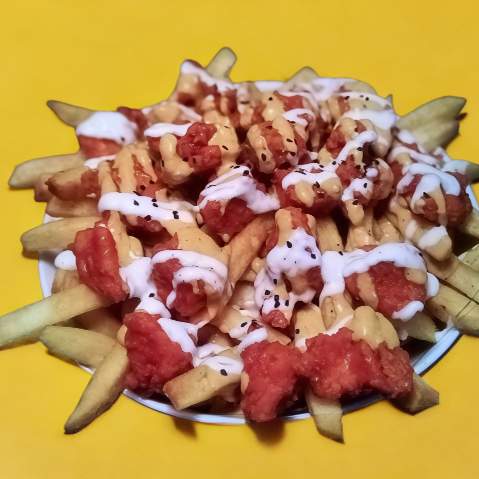 Boneless sobre una cama de papas fritas