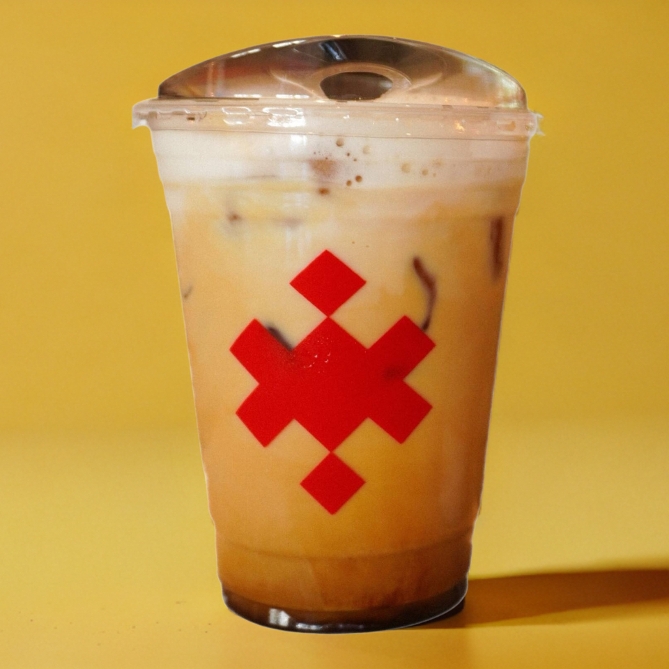 Café latte frio o caliente con café espresso, leche y jarabe de tu elección