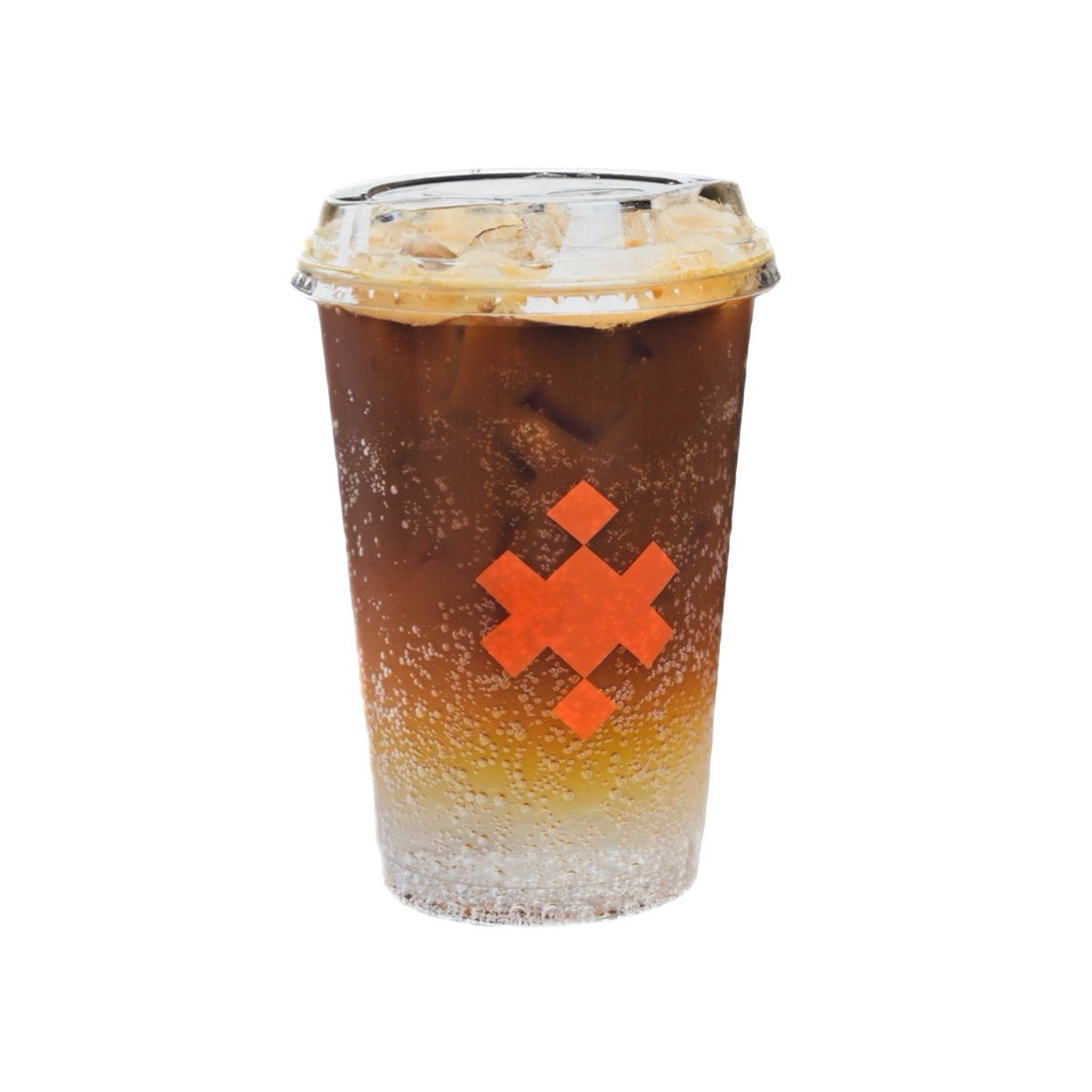 Un café de espresso con leche, jarabe sabor a tiramisú, coldfoam y un toque de cocoa en polvo en la parte superior.