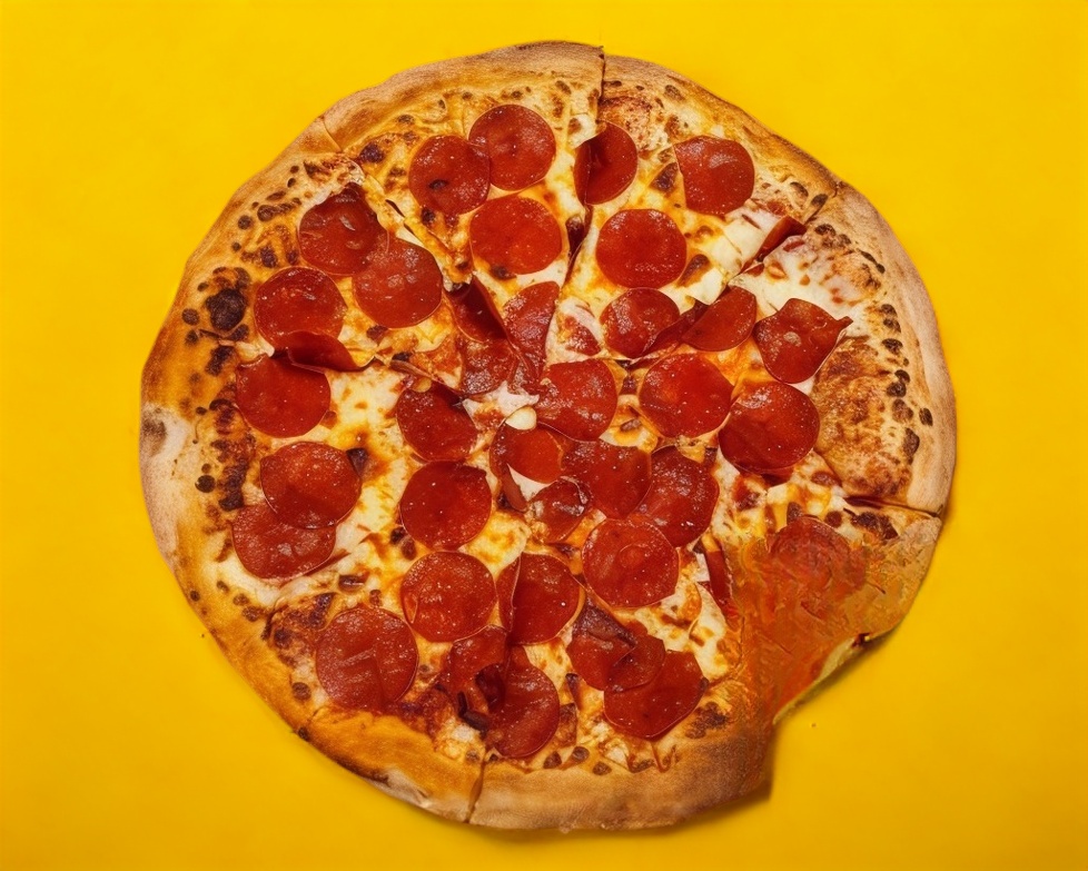 Masa recién hecha, salsa de tomate, queso 100% mozzarella y Pepperoni