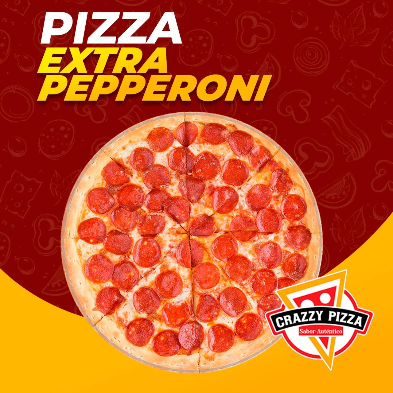Masa recien hecha, salsa de tomate, queso 100% mozzarella y una porcion extra de pepperoni