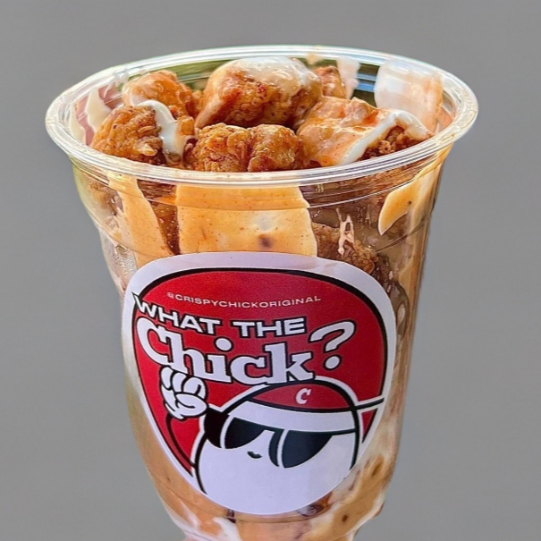 Bolitas de pollo frito bañadas con aderezos en vaso.200 gr.