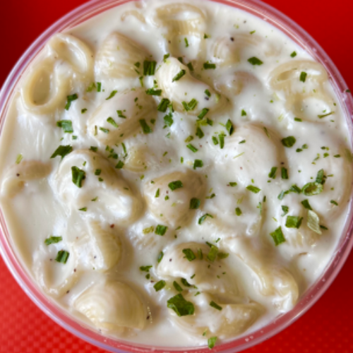 Macarrón con salsa blanca de quesos.