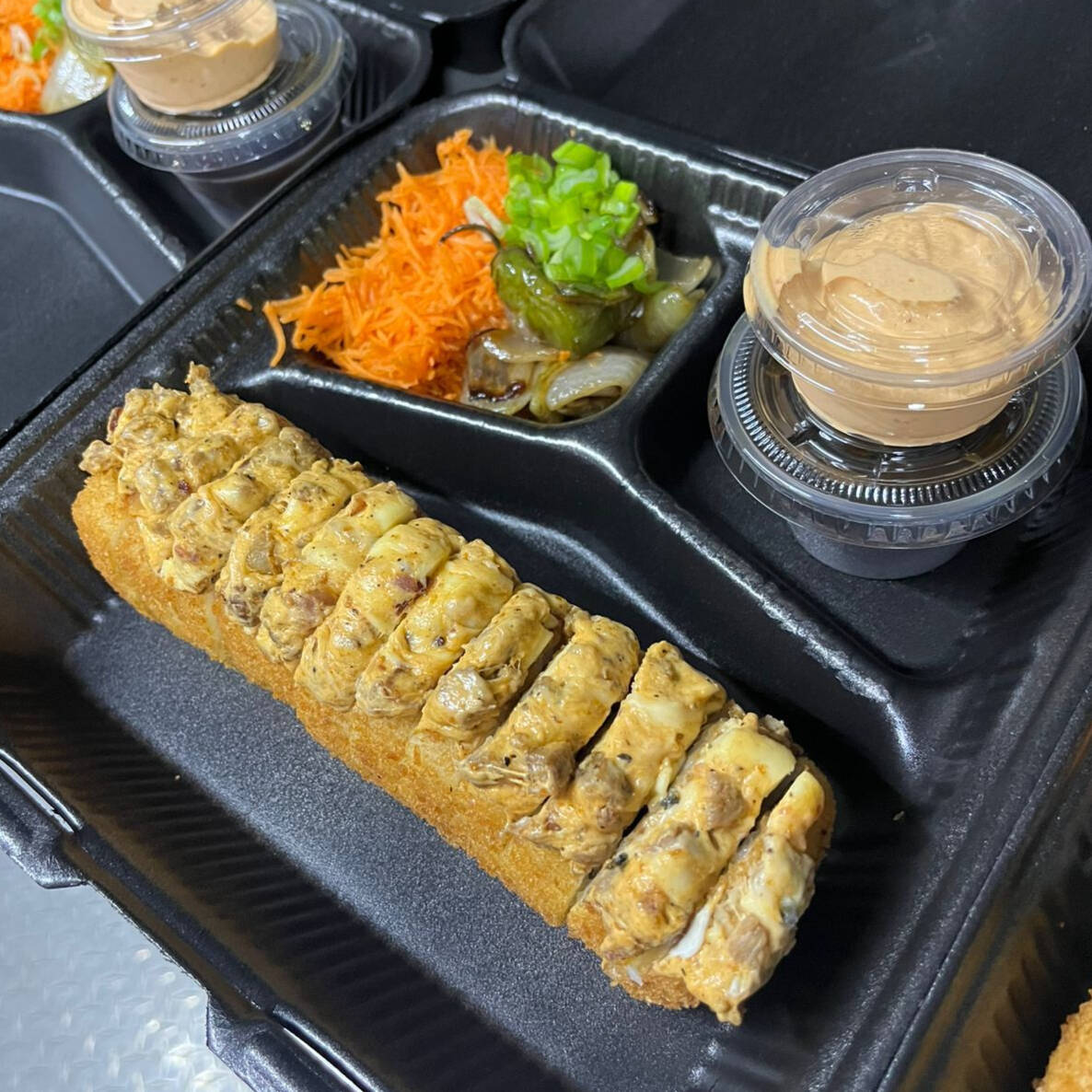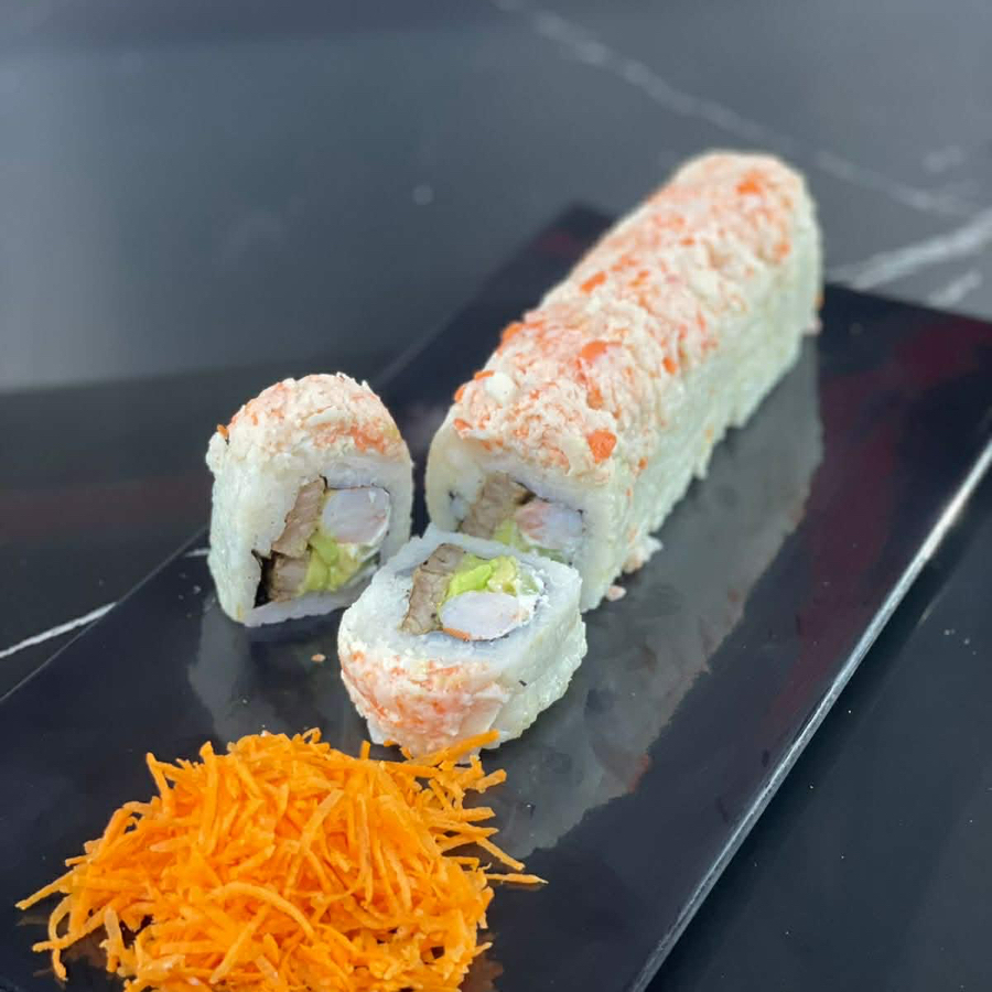 Aguacate, Pepino, Philadelphia, Res Y Camaron, con gratinado especial con res y tocino