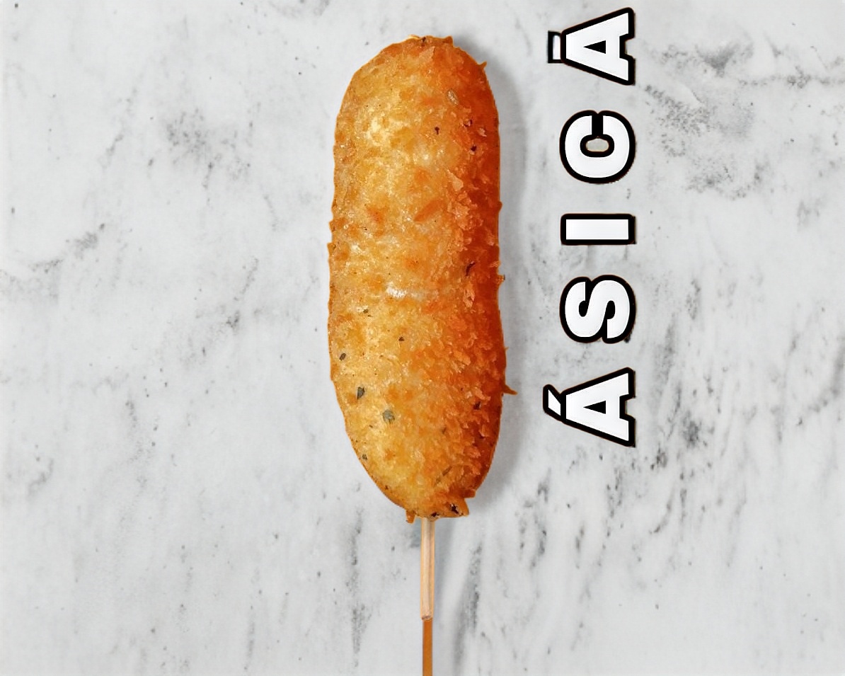 Banderilla coreana, cubierta con masa especial, panko y ramen frito