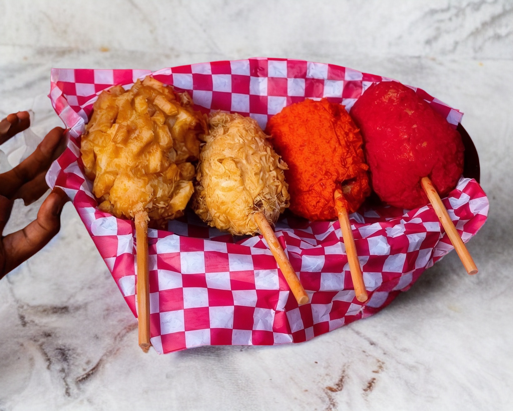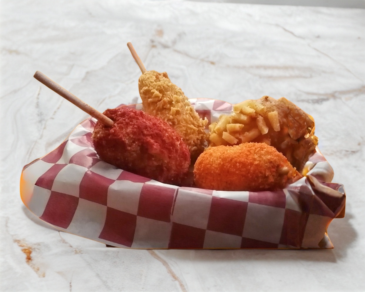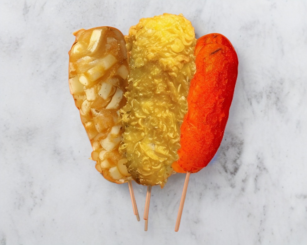 3 Banderillas coreanas con diferentes cubiertas y rellenos