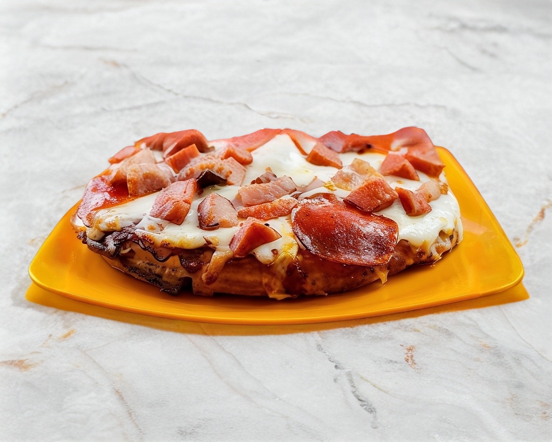 Pizza wafle coreana con tocino,.peperoni y salchicha