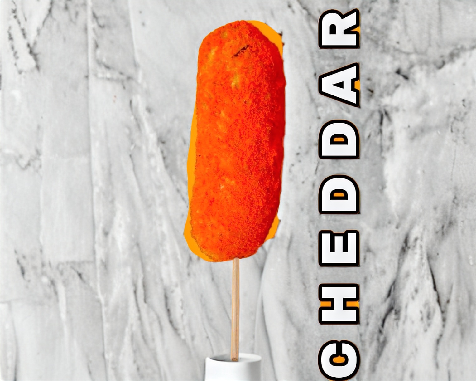 Banderilla coreana, cubierta con masa especial, panko y polvo sabor cheddar