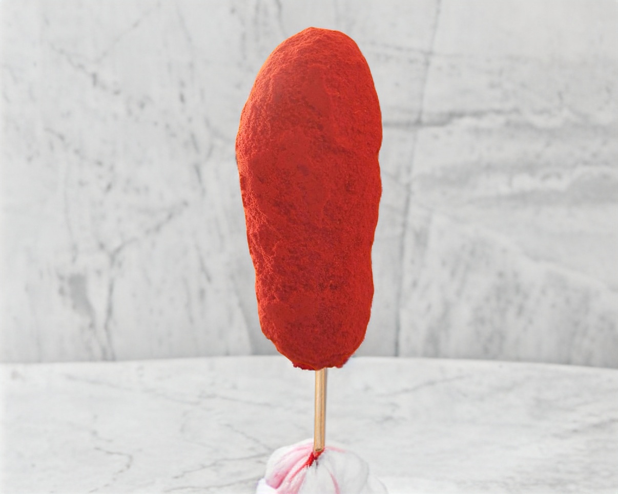 Banderilla coreana, cubierta con masa especial, panko y polvo sabor flamín hot, chipotle, jalapeño ó queso amarillo