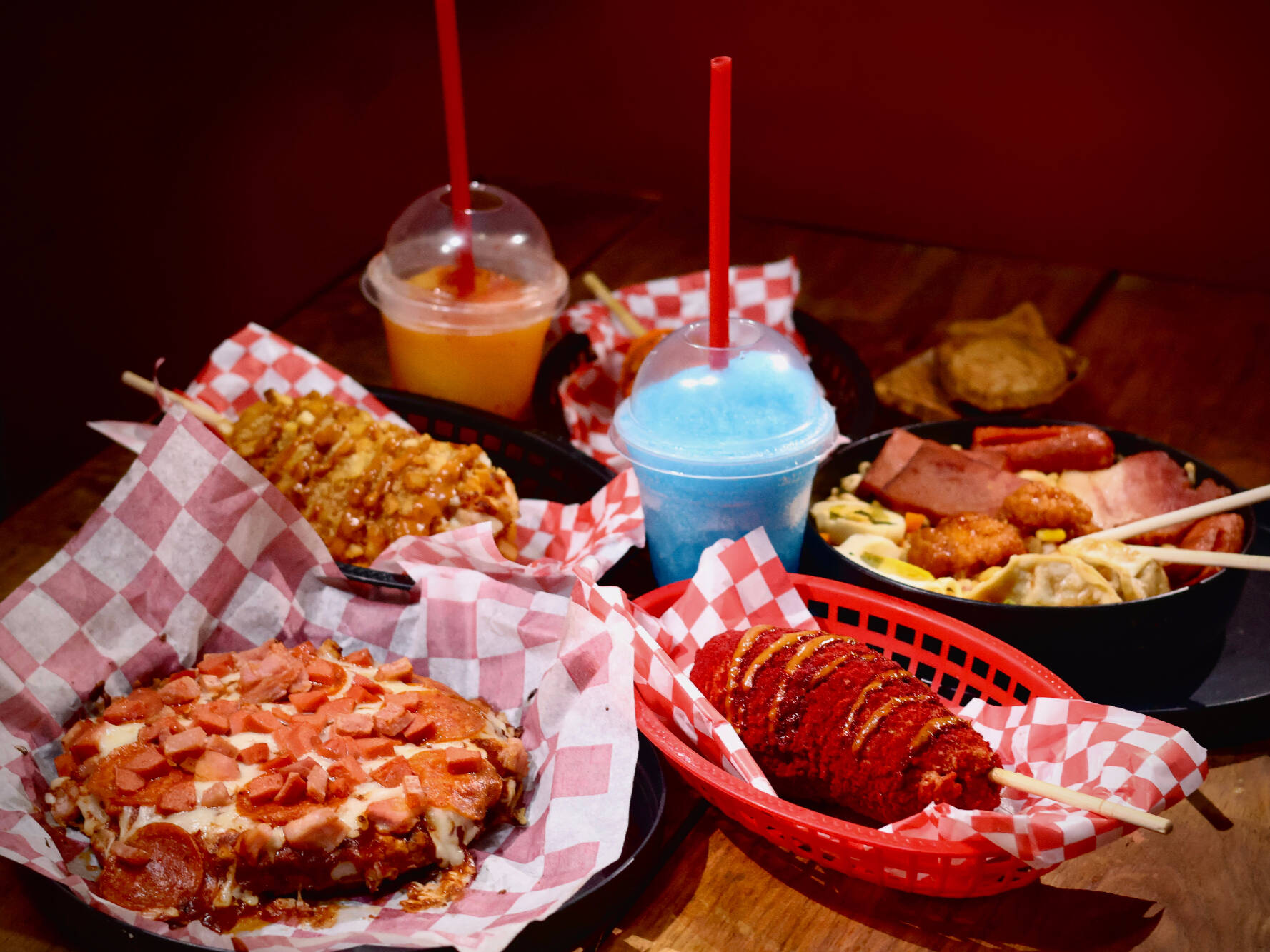 COMBO BANDERILLA Y PIZZA WAFLE COREANO