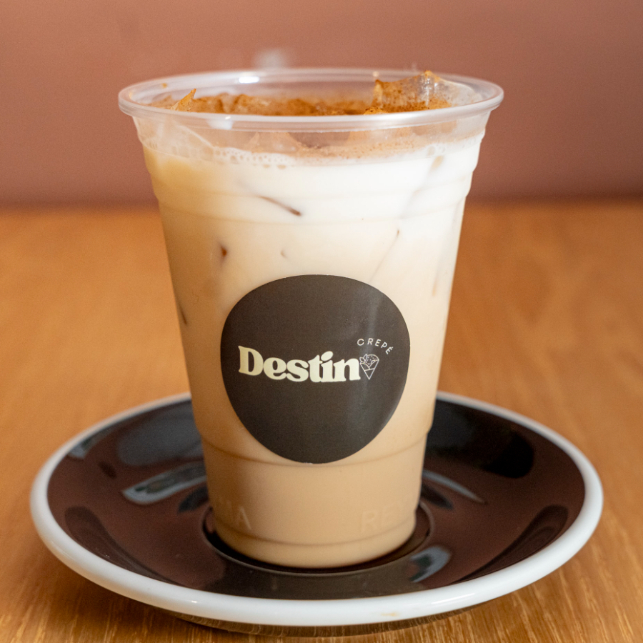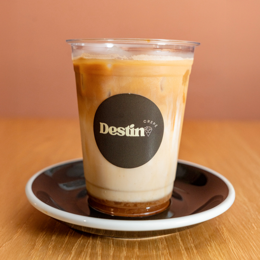 Bebida realizada con espresso de grano de especialidad, leche deslactosada vertida sobre hielos & Esencia de Vainilla artesanal.