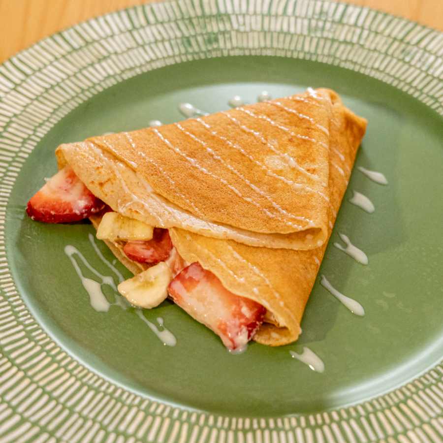 Crepa calientita con Nutella derretida y plátano fresco.