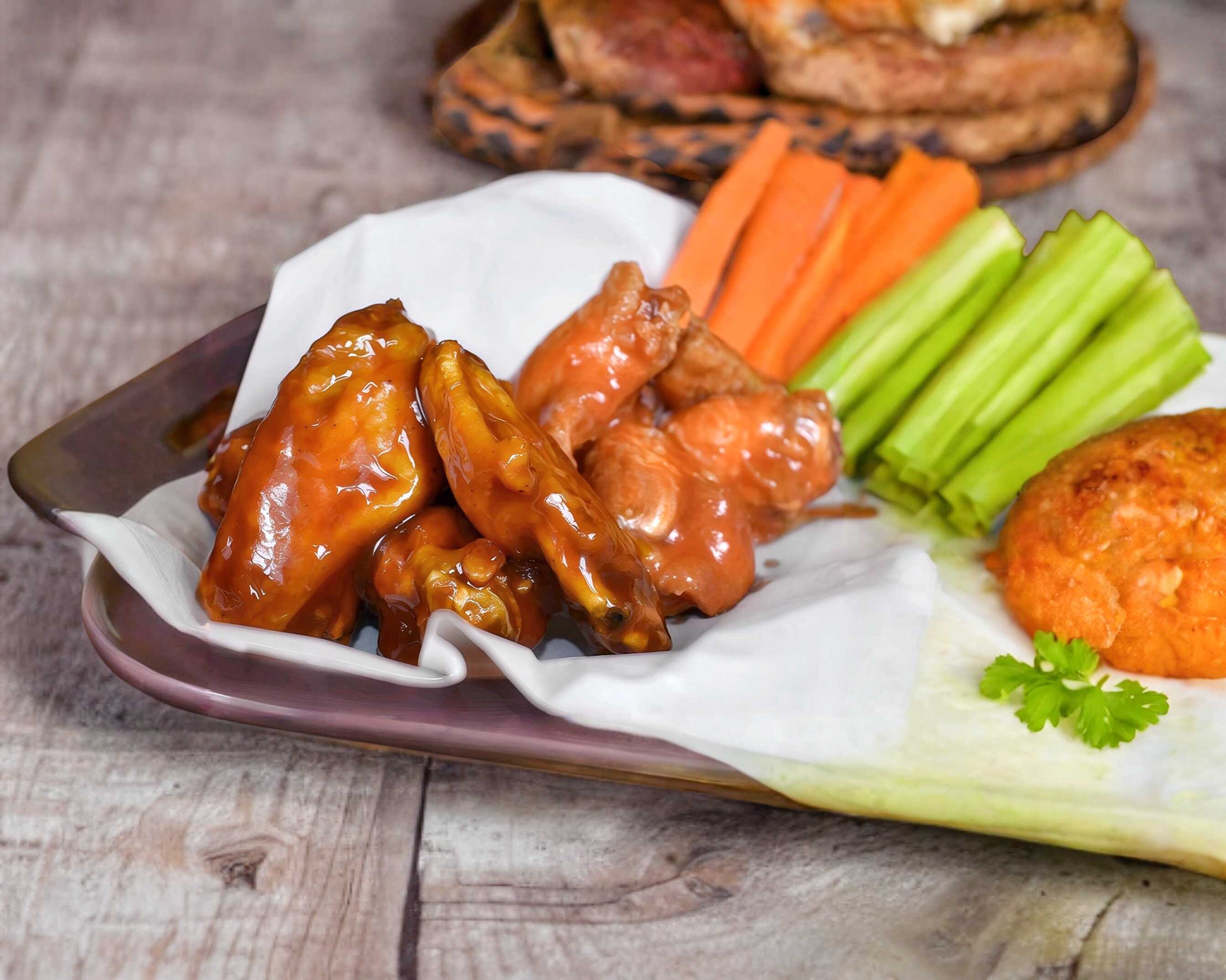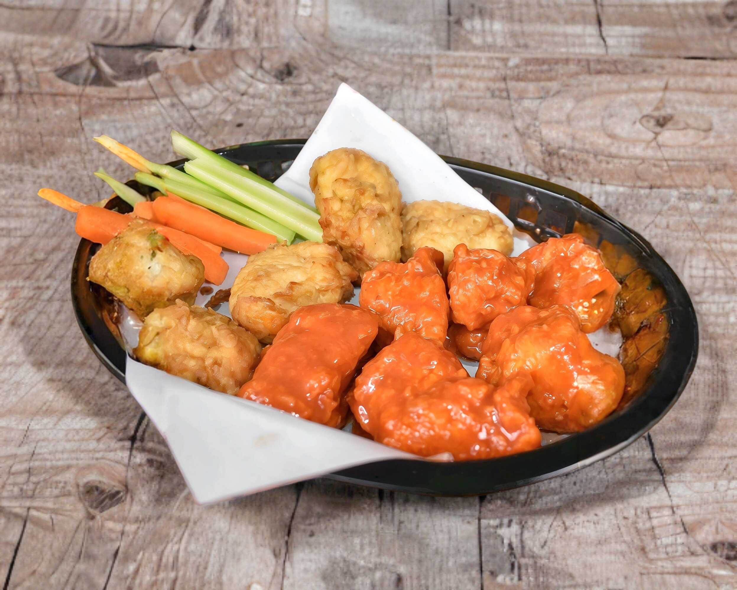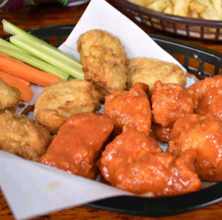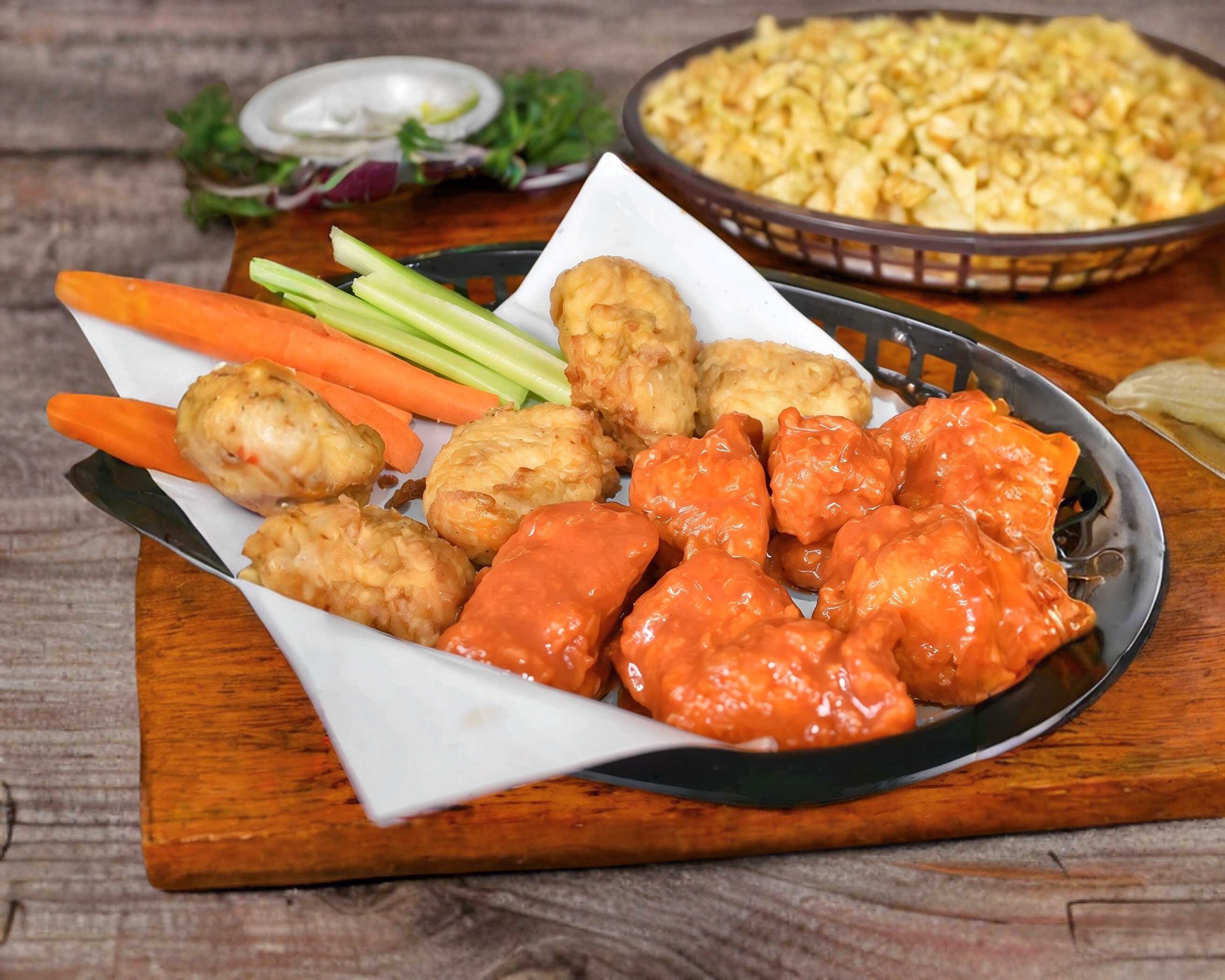 Elige el sabor de tus boneless. Incluye aderezo ranch acompañado de apio y zanahoria.