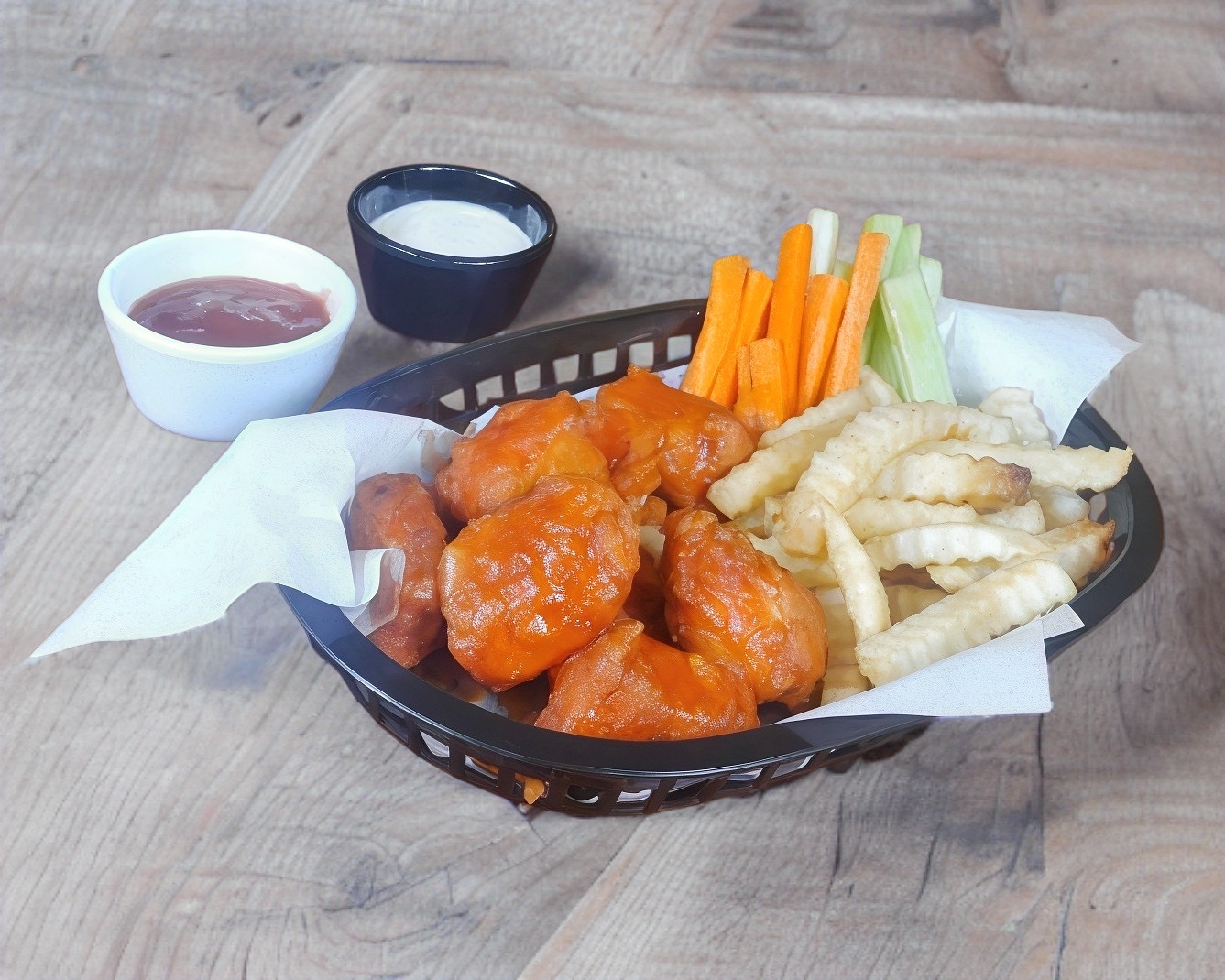 8 piezas de boneless, 1 aderezo Ranch( 2oz), apio y zanahoria