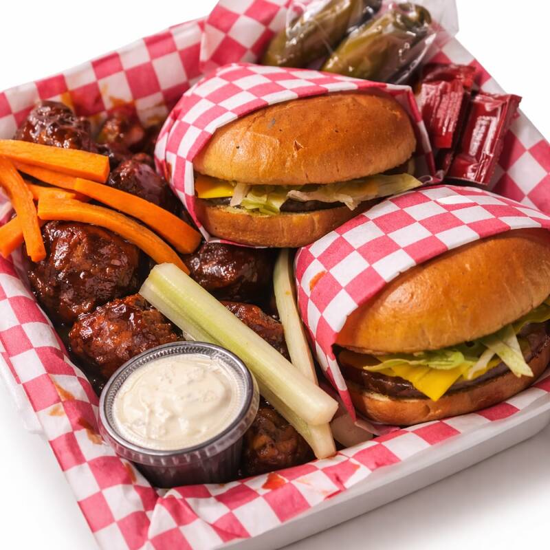 1 hamburguesa, 3 alitas o boneless, 1 papas, 1 refresco.