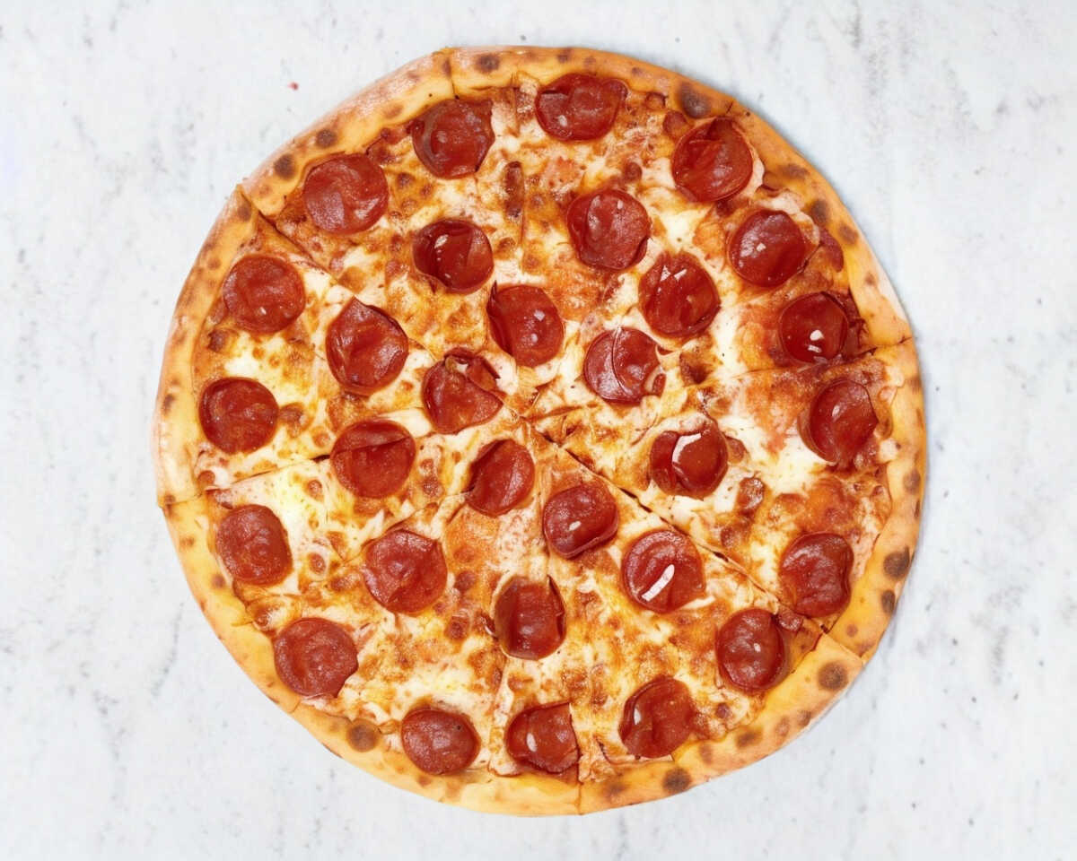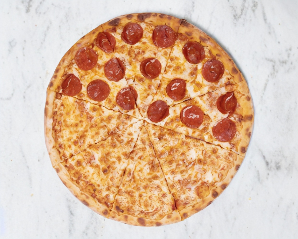 Deliciosa Pizza de 14" con Queso y Pepperoni.