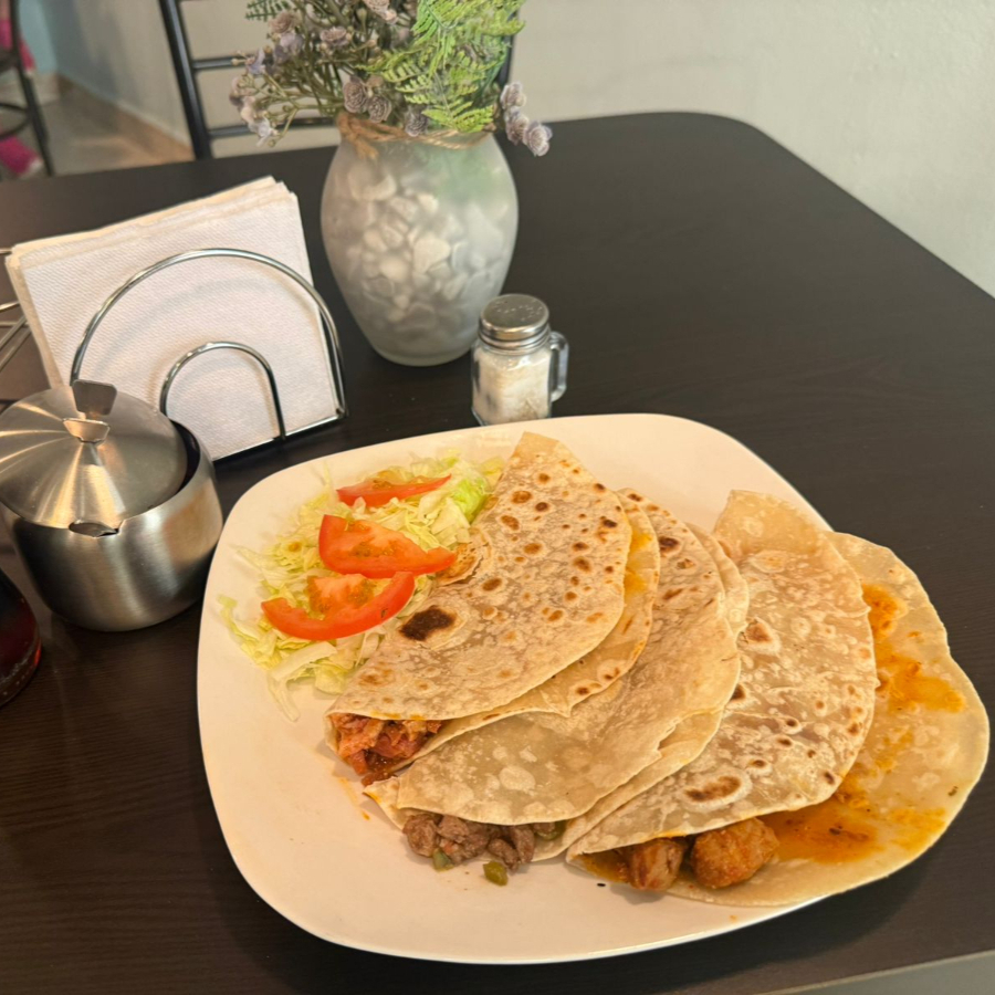 Tortilla de harina hecha a mano, la entregamos con su verdura aparte, para mantener la frescura del platillo.