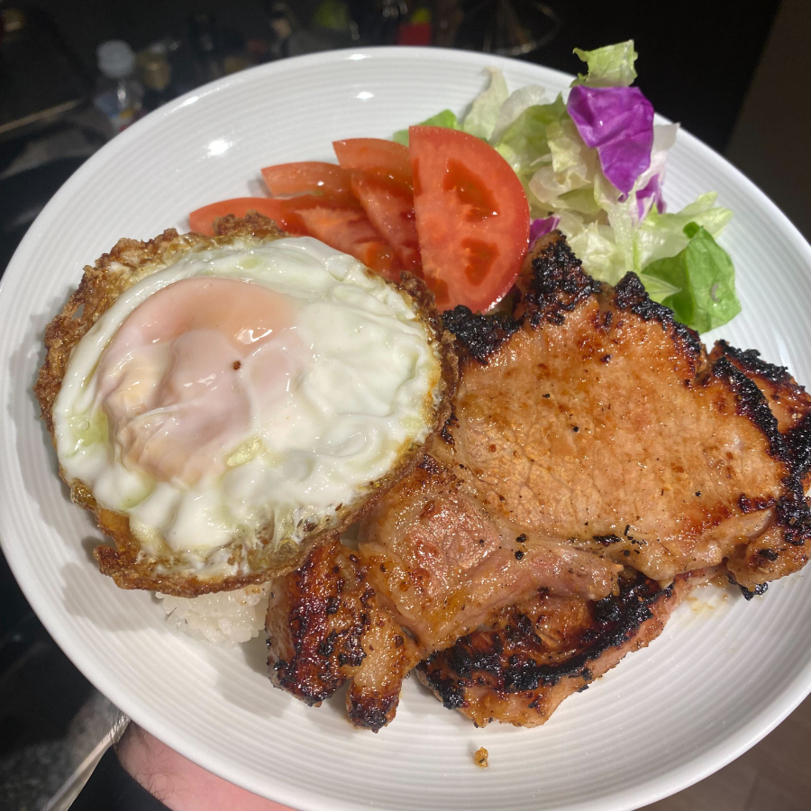 HUEVO ESTRELLADO CON CHULETA AHUMADA