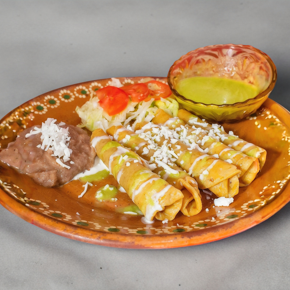 5 Piezas, acompañadas de lechuga, frijoles, queso, crema, salsa de la casa.