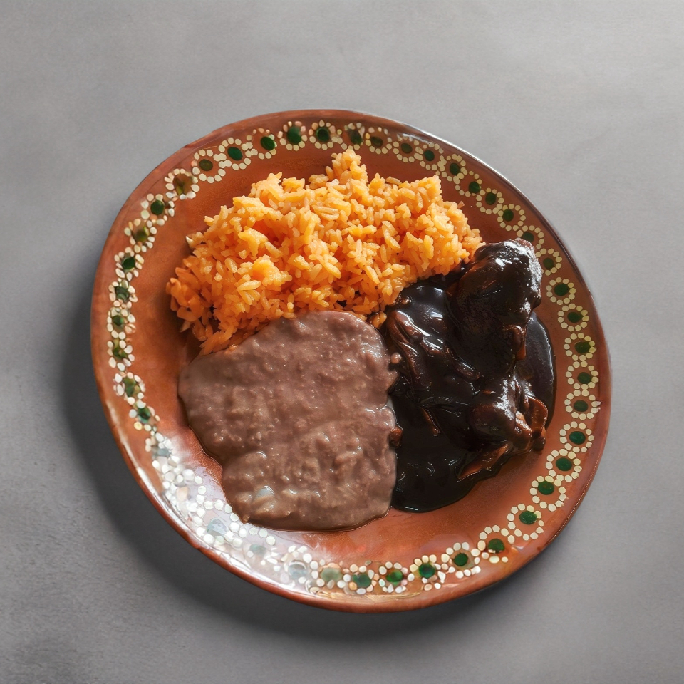 Elaborado con mole de Veracruz, acompañado de arroz, frijoles, tortillas y salsa de la casa.