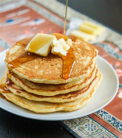 A la plancha con mantequilla, acompañado con mermelada de fresa o miel de maple.