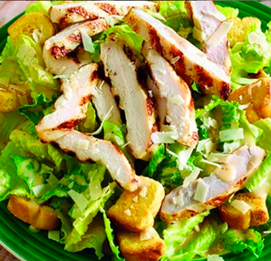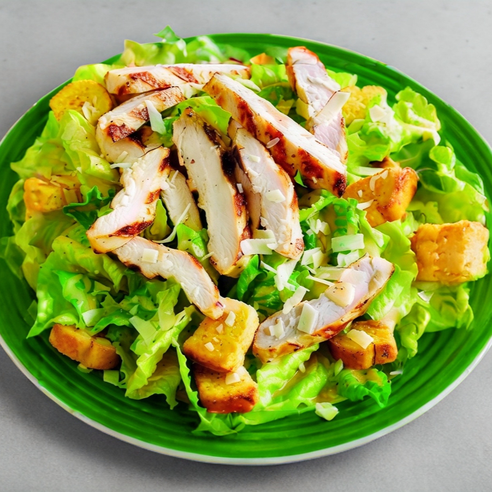 Elaborado don lechugas, zanahoria, pepino, tomate, queso, huevo hervido, pollo a la plancha acompañado de galletas habaneras y aderezo.