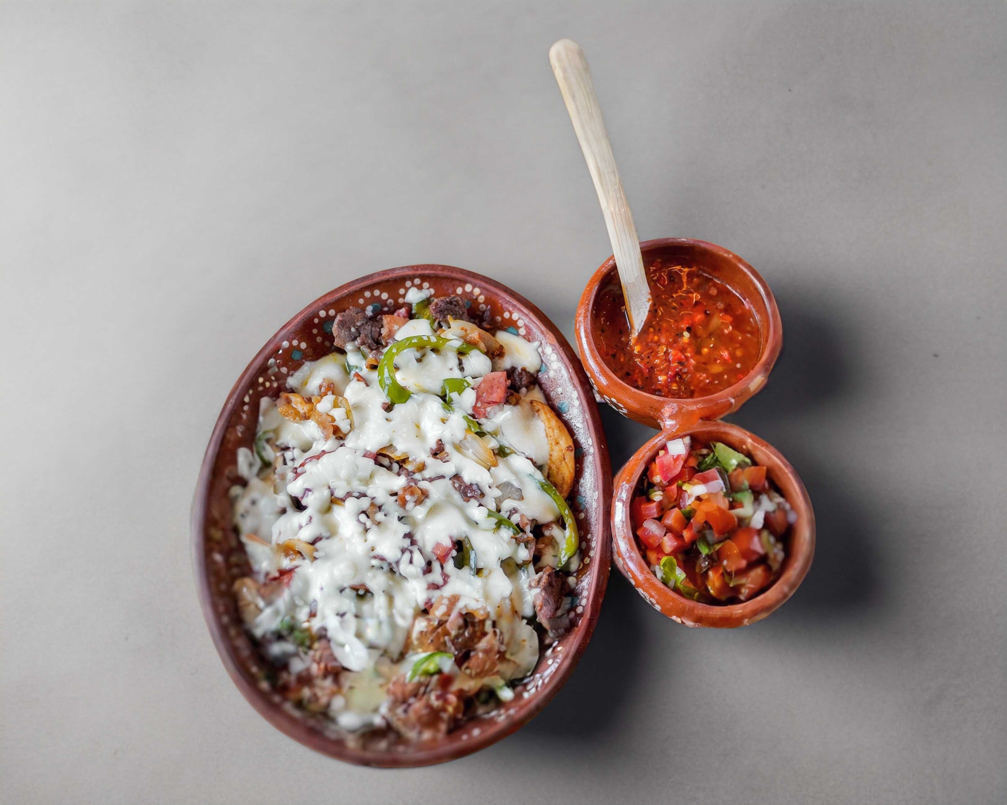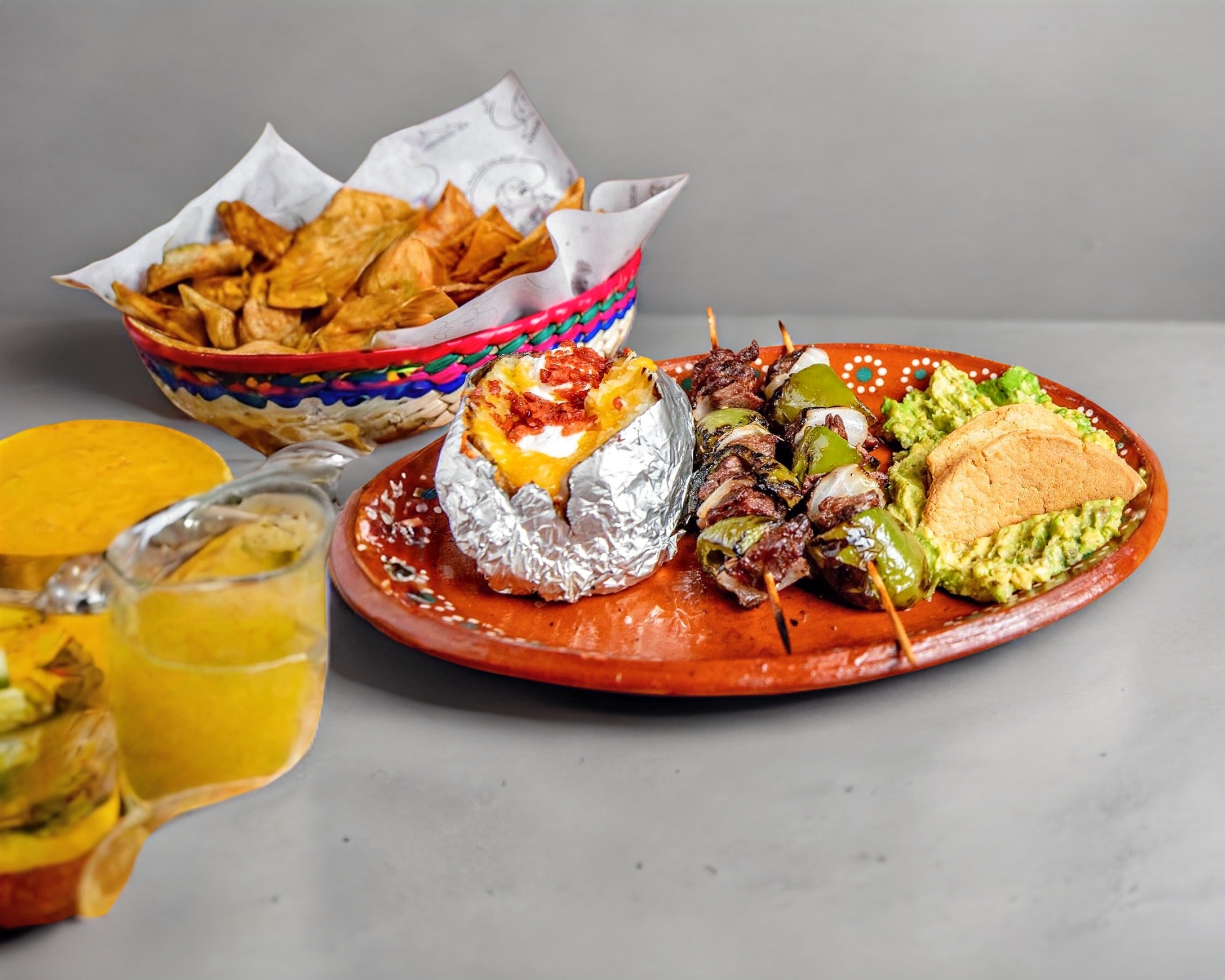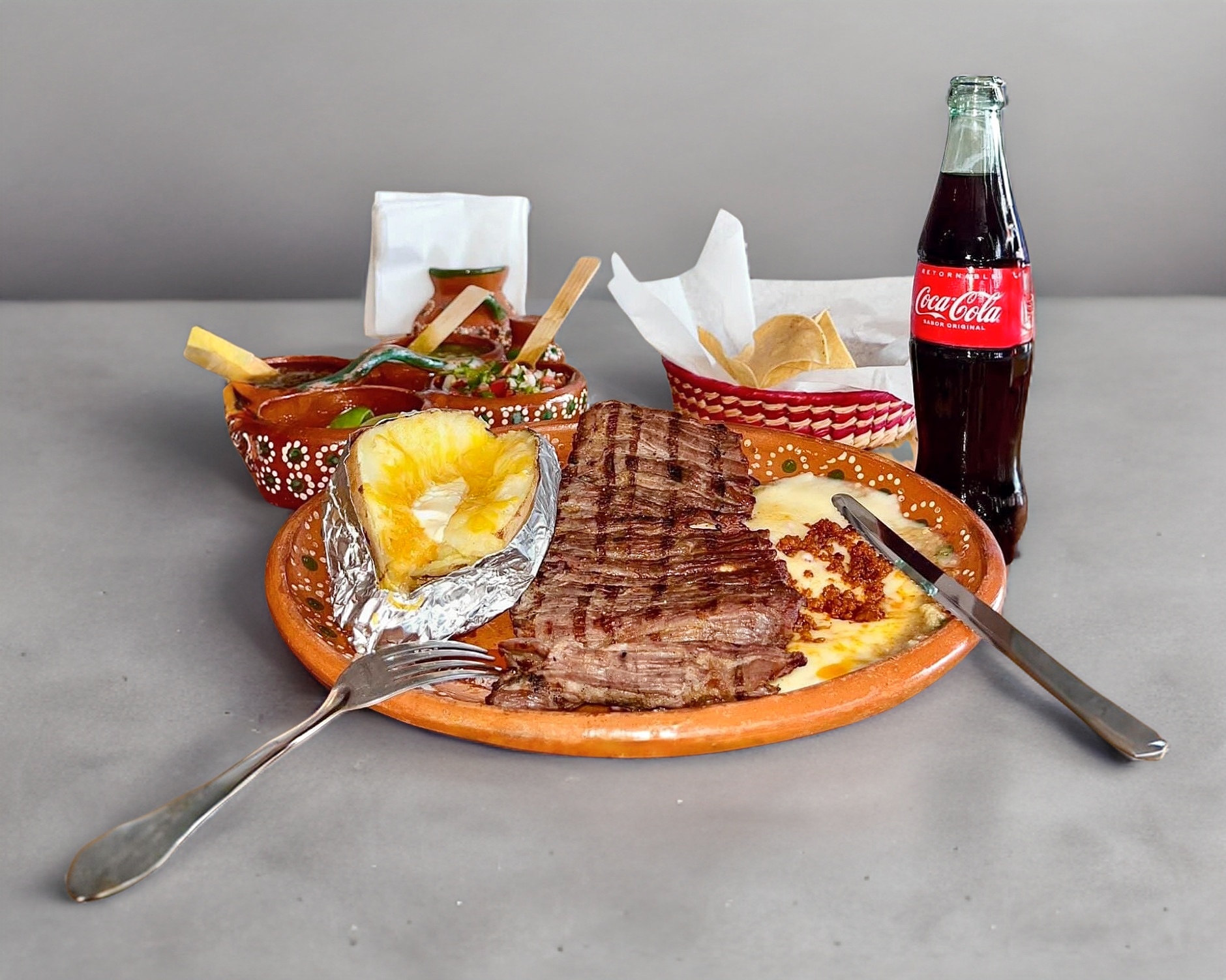 Fajita para 4 personas con 4 frijoles, tortillas, salsas, totopos, cebolla asada y nopales