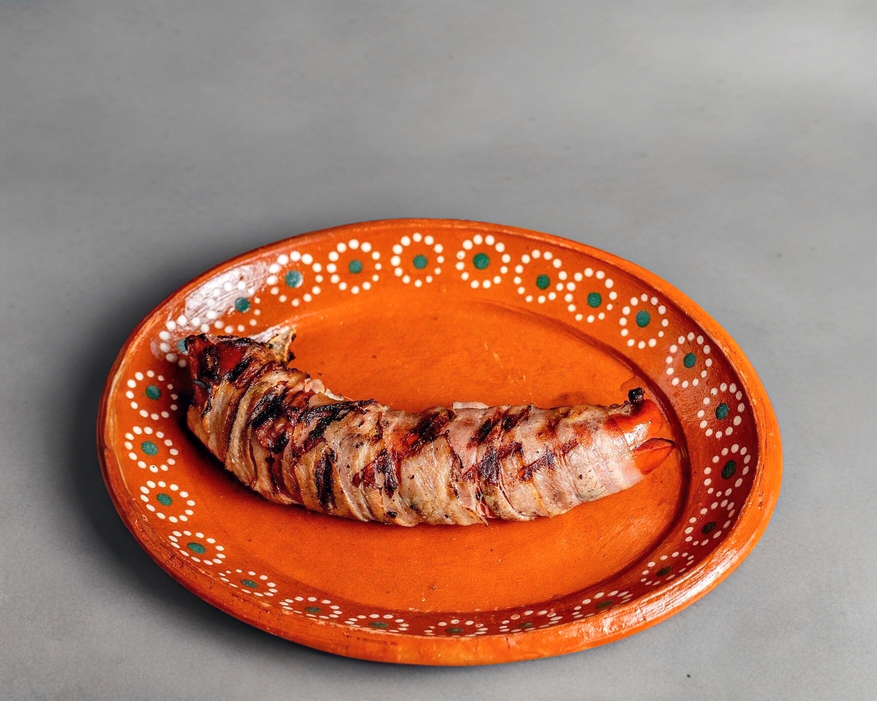 SALCHICHA POLACA REELLENA DE QUESO ENVUELTA EN TOCINO