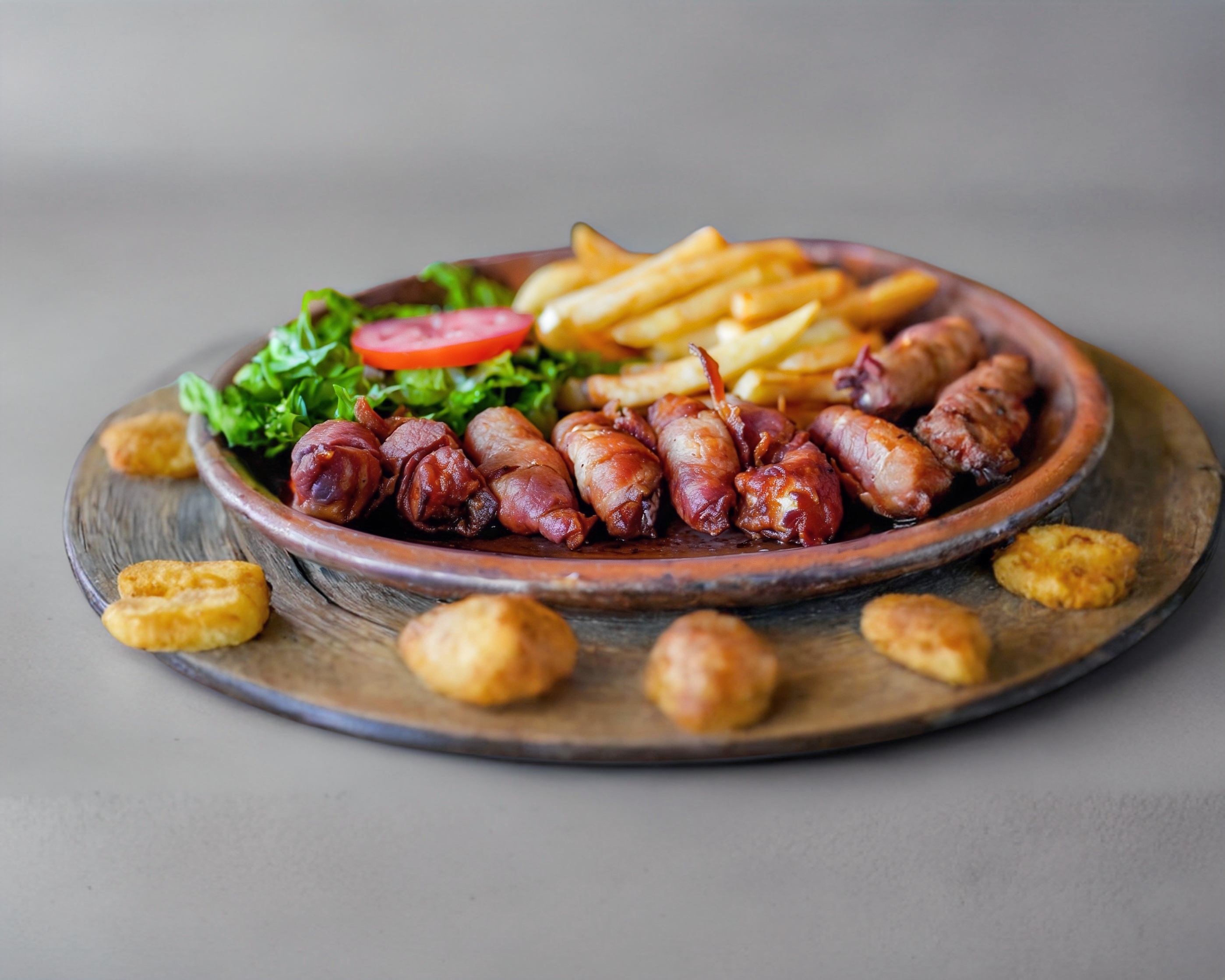 FAJITA,POLLO,SALCHICHA,TOCINO,CHORIZO,CHILE MORRON Y CEBOLLA
