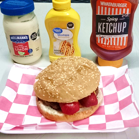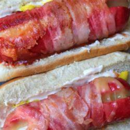 Riquisimo Hot Dog preparado con Salchicha para asar al Carbon relleno de queso y tocino
