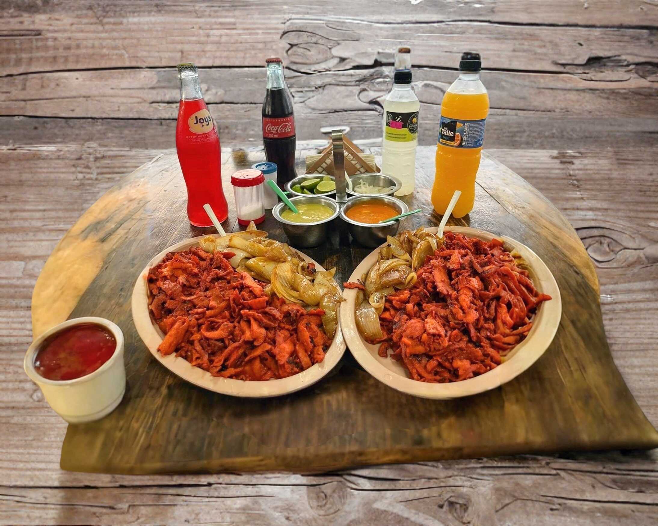 Medio Kilo de Pastor acompañado de 15 tortillas, salsa verde, salsa roja y limones