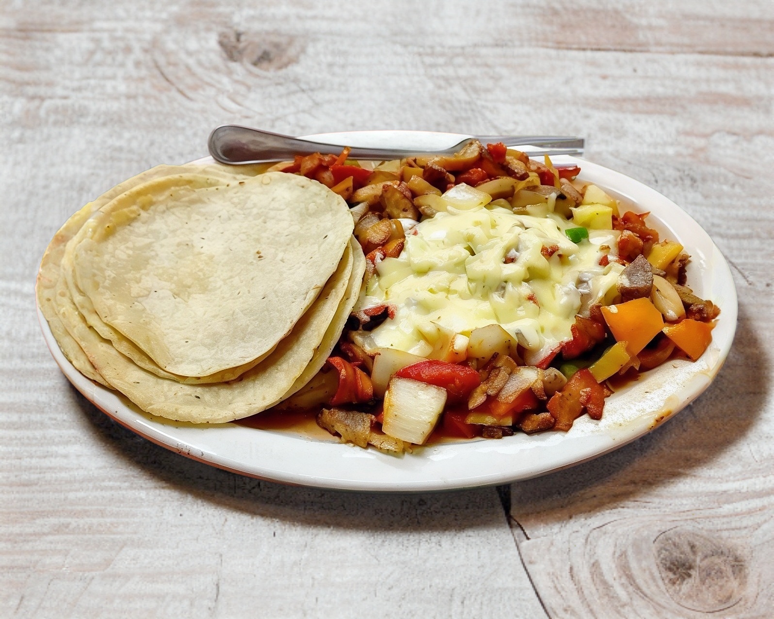 Bistec, champiñones y queso asadero.
