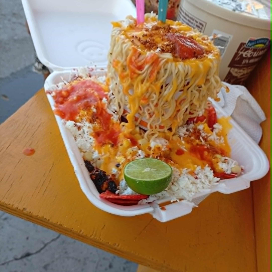 Maruchan, Elote, tostitos u otras sabritas a eleccion, bañado en queso amarillo