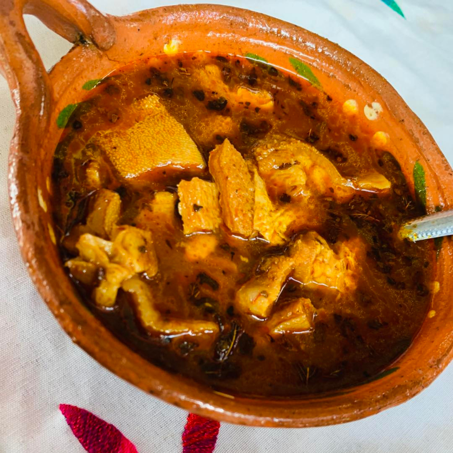 un litro de menudo de res, tortillas recien echas,cebolla,chile y limon