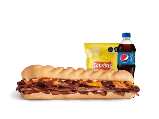 Sándwich Steak & Cheese Mediano con Snack y Bebida de 400 ml a elección.