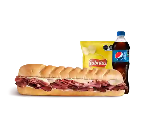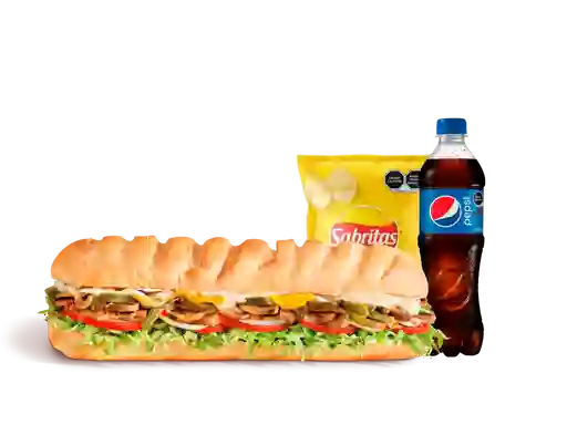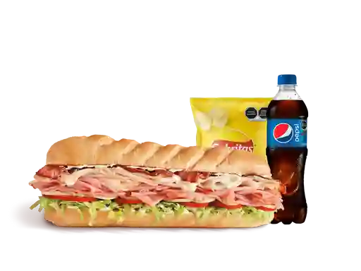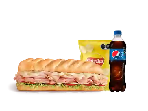 Sándwich 3 Carnes Sub Mediano con Snack y Bebida de 400 ml a elección.