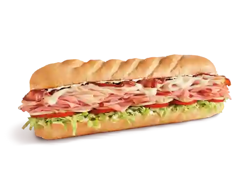 Sándwich de 30 cm con salami, jamón virginia honey, pepperoni, queso provolone, aderezo italiano, especias Italianas de temporada, mayonesa, mostaza deli style, lechuga, tomate y cebolla, tamaño a elegir.