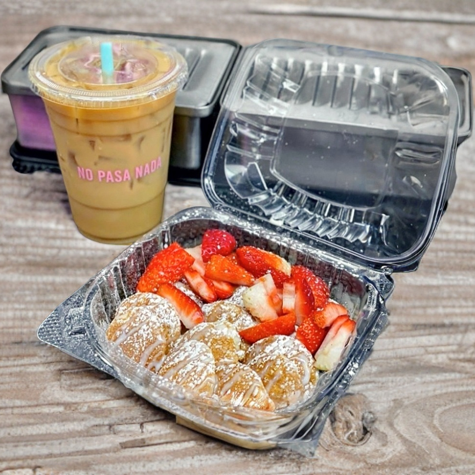 18 pz de espongosos mini pancakes con miel y lechera mas cafe frio