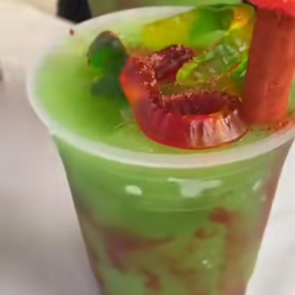 bebida a base de agua con limones naturales ,ecencia de limon,chamoy ,chile en polvo,gomitas