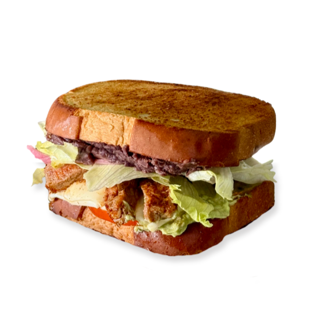 "PAN BLANCO ARTESANAL - TOCINO" guacamole, rodajas de tomate, lechuga romana, acompañado de aderezo ranchitos